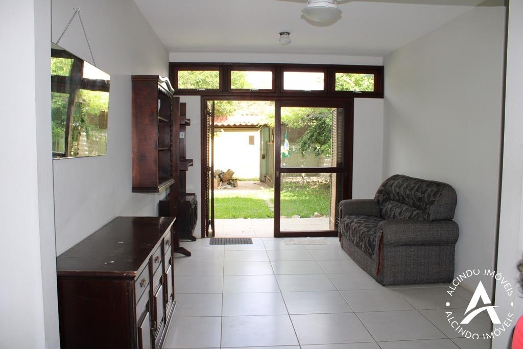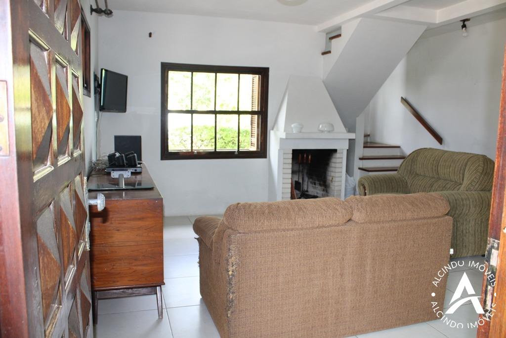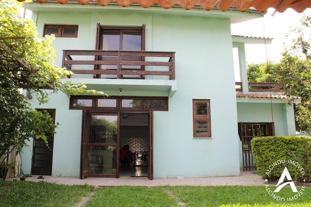 Sobrado de Alvenaria, laje e telhas de barro, com 149,44M². Contendo 01 suíte com banheira, 02 salas de estar sendo 1 com lareira, 01 cozinha com sala de jantar, 01 lavanderia, 01 banheiro social, sacada ampla. Escada revestida em madeira, com pátio nos fundos.