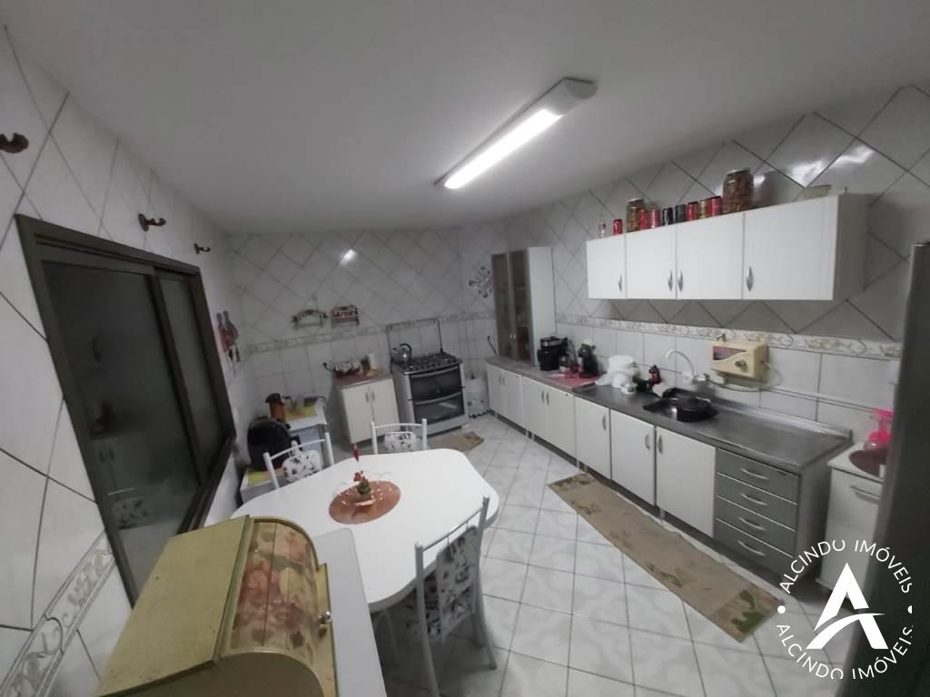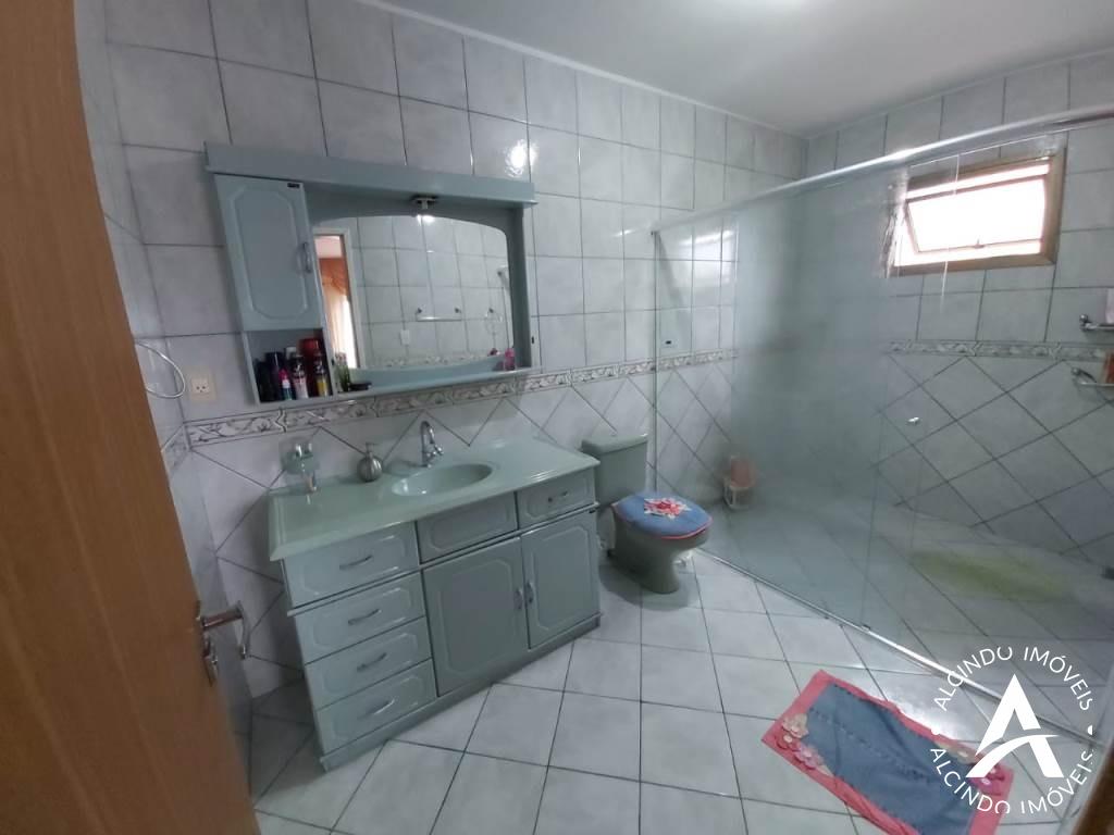 Sobrado em Alvenaria com 340m², Piso superior: 01 suíte, 02 dormitórios, 01 banheiro, 01 sala de estar com lareira, sala de jantar, sala de entrada, cozinha ampla, lavabo. Térreo: garagem ampla para 04 carros, lavanderia, 01 dormitório, 01 escritório, churrasqueira, 01 banheiro. Pátio murado e calçado.