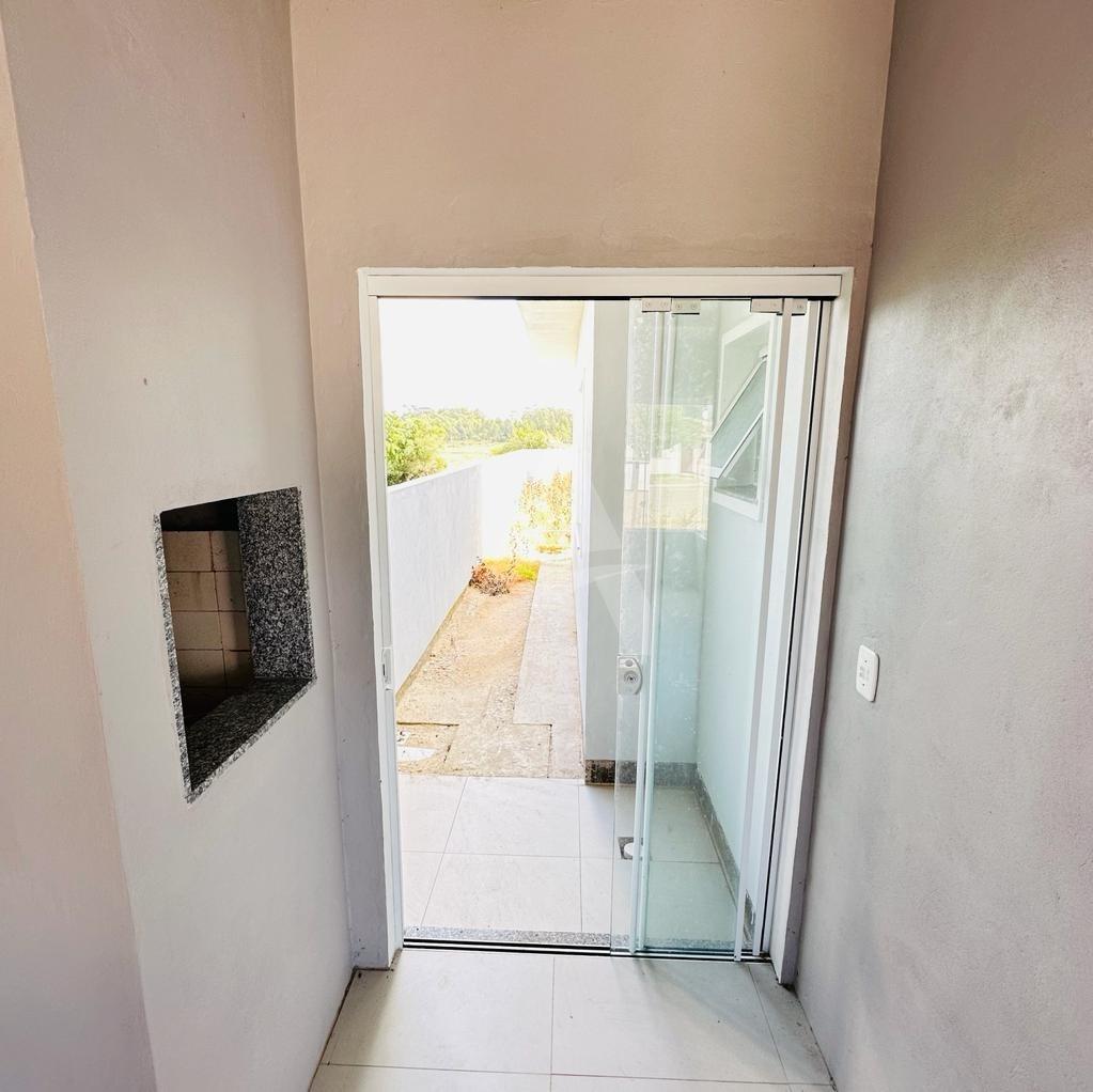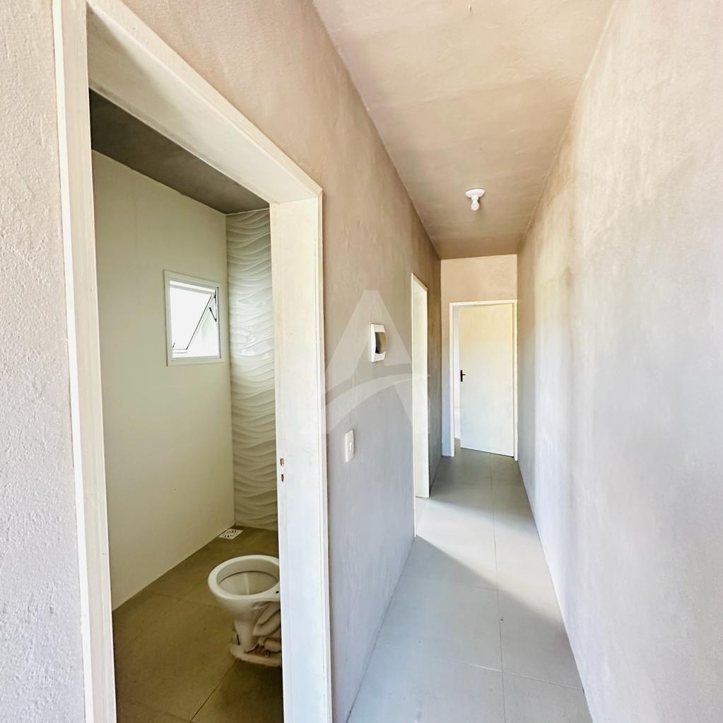 Casa de Alvenaria e laje, com 2 dormitórios, sala, cozinha, banheiro, churrasqueira, área de serviço. Toda murada. 52,70m² de área construída, terreno 5,00X27,00m. Rua calçada, próximo a escola e posto de saúde, ponto de ônibus na frente.