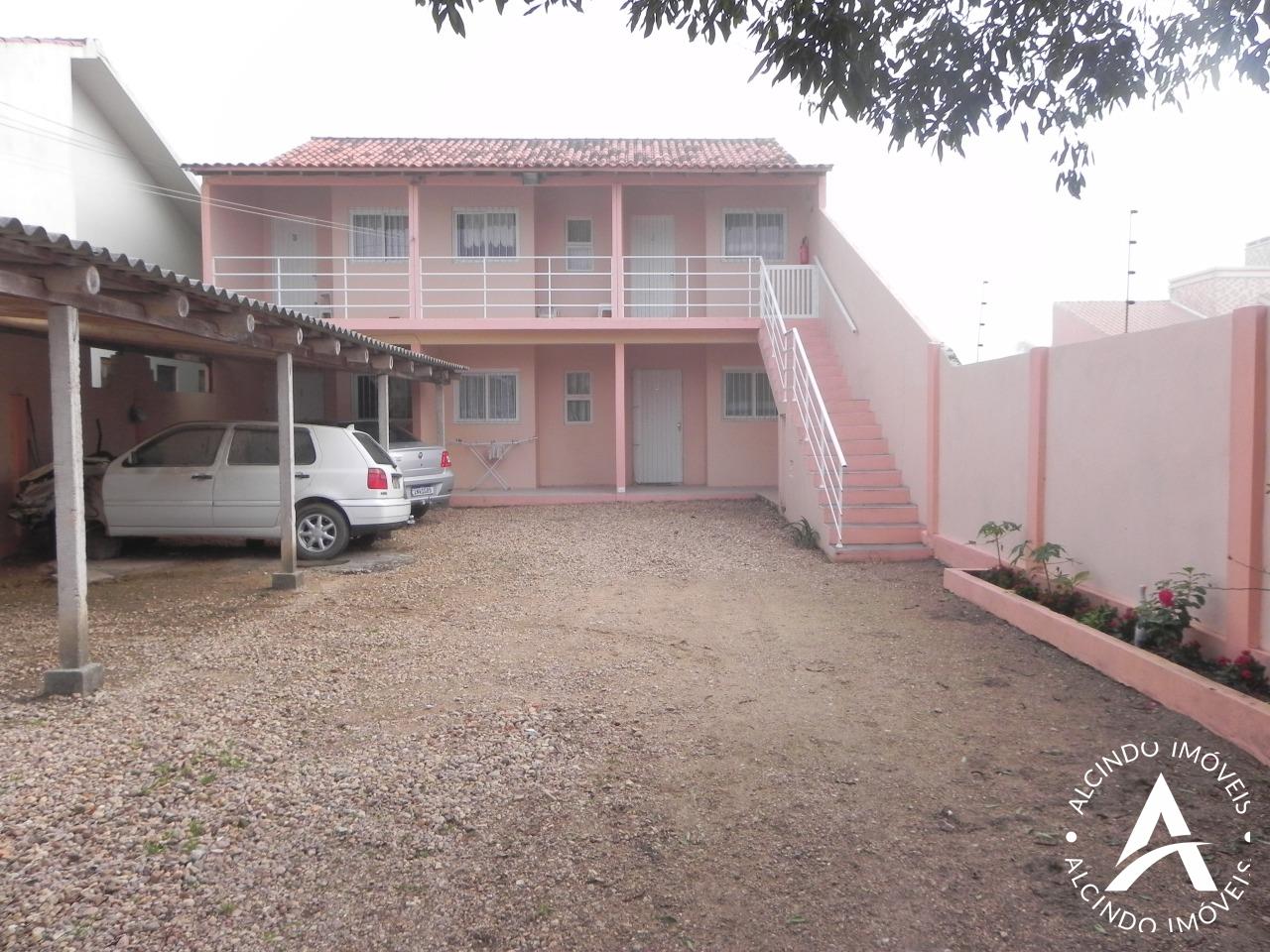 Casa de alvenaria: com 261,60 m² - prédio com 02 apartamentos de 1 dormitório, sala-copa-cozinha e banheiro. E 02 apartamentos com 02 dormitórios, sala-copa-cozinha e banheiro. Abrigo para 03 automóveis e churrasqueira em condomínio.