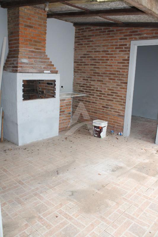 Casa de alvenaria e laje: 100m2 com 03 dormitórios, sala, cozinha, banheiro, garagem com churrasqueira, lavanderia e despensa. Frente oeste e sul.
