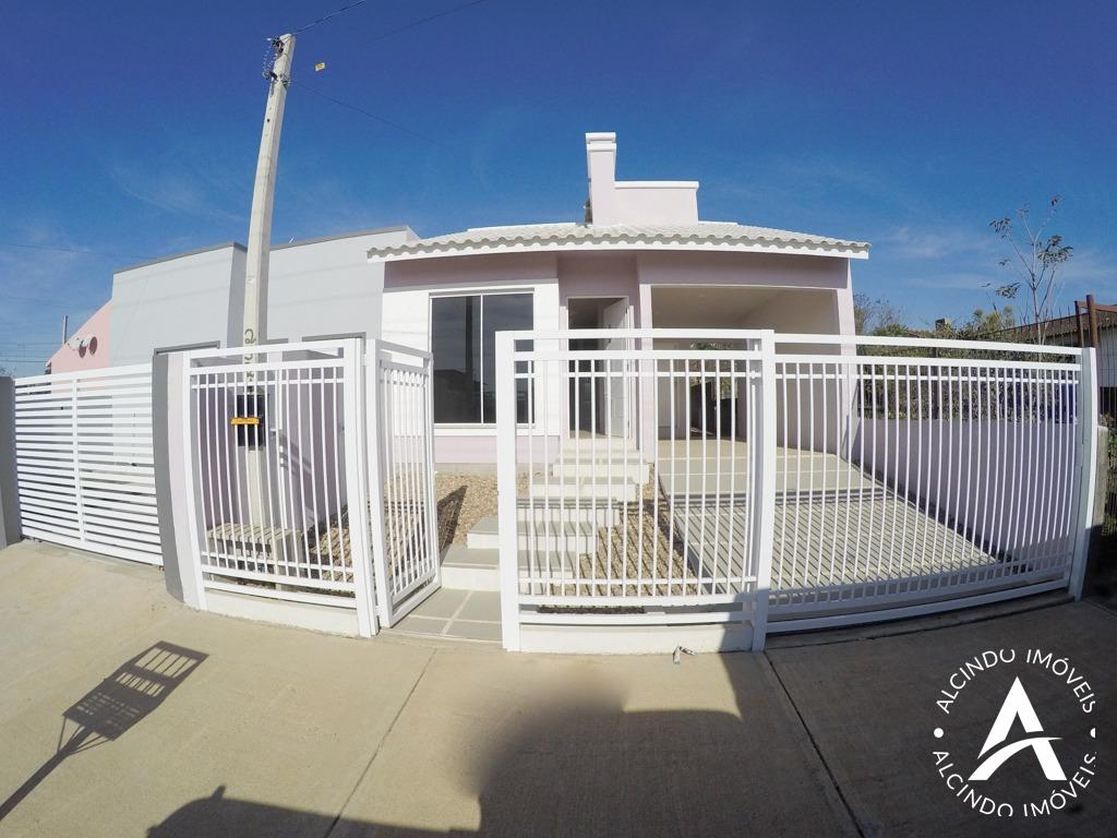 Casa em alvenaria, laje, telhas de barro, 02 dormitórios, sala, cozinha, banheiro, abrigo, churrasqueira, box de vidro, chuveiro, espera para climatizadores, janelas em alumínio, portas em madeira, piso em porcelanato, caixa de agua com 500 litros, estrutura para segundo piso. Terreno 7 x 20. A duas quadras da floricultura Nicole.