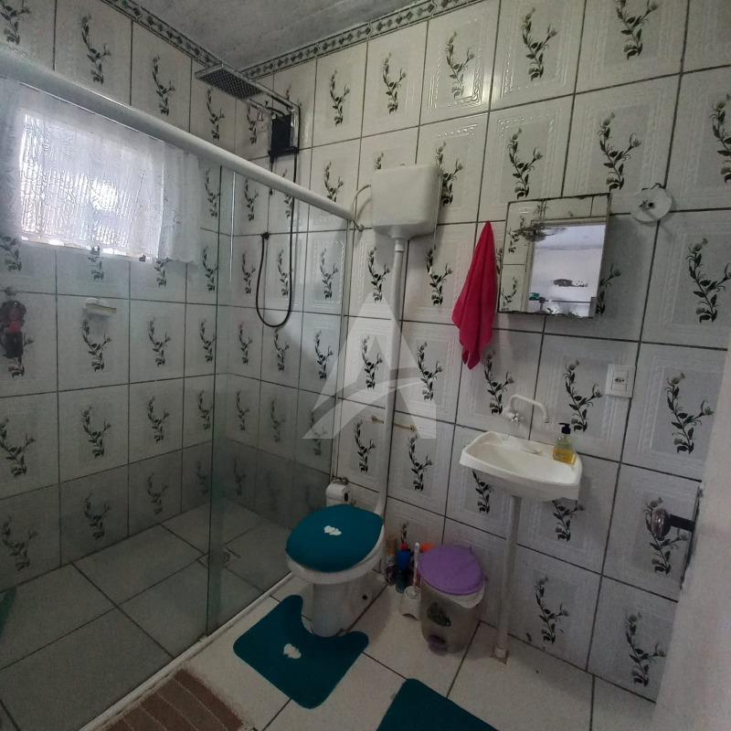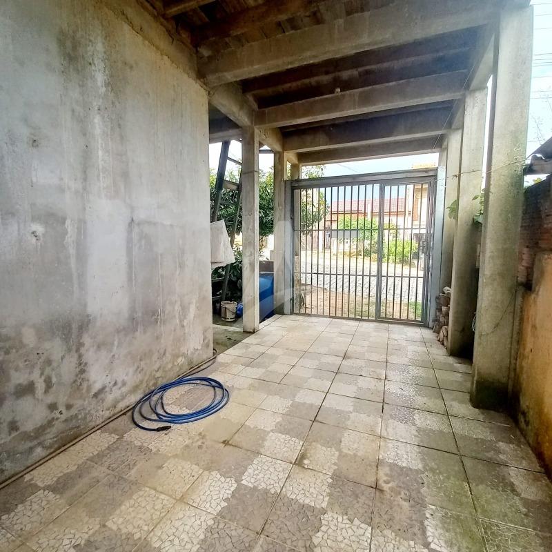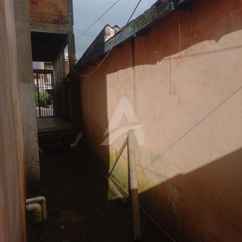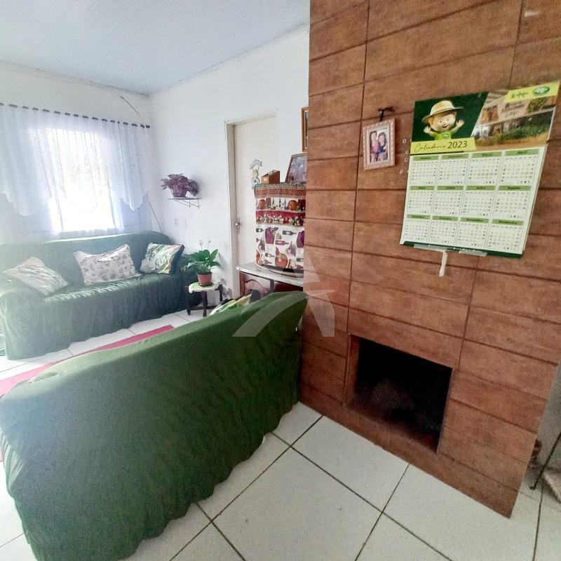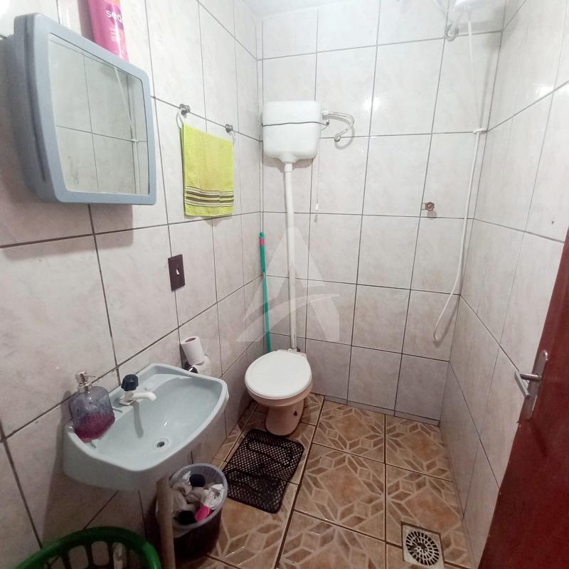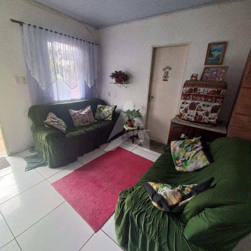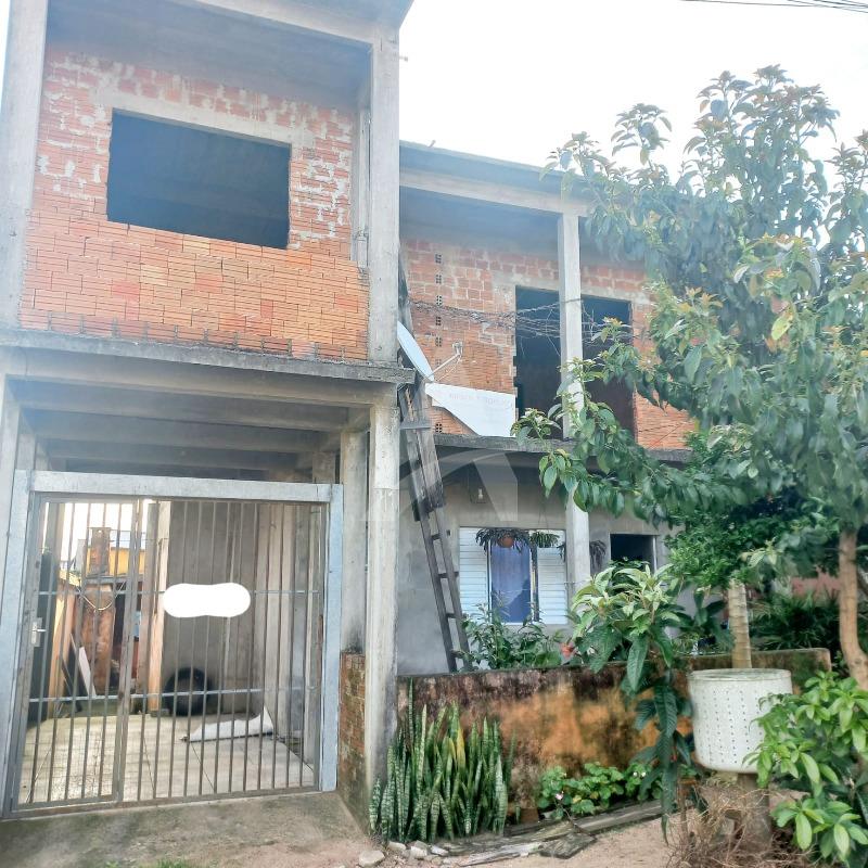 Sobrado com 02 dormitórios, sala com lareira, cozinha, banheiro, garagem, parte superior não terminado.
