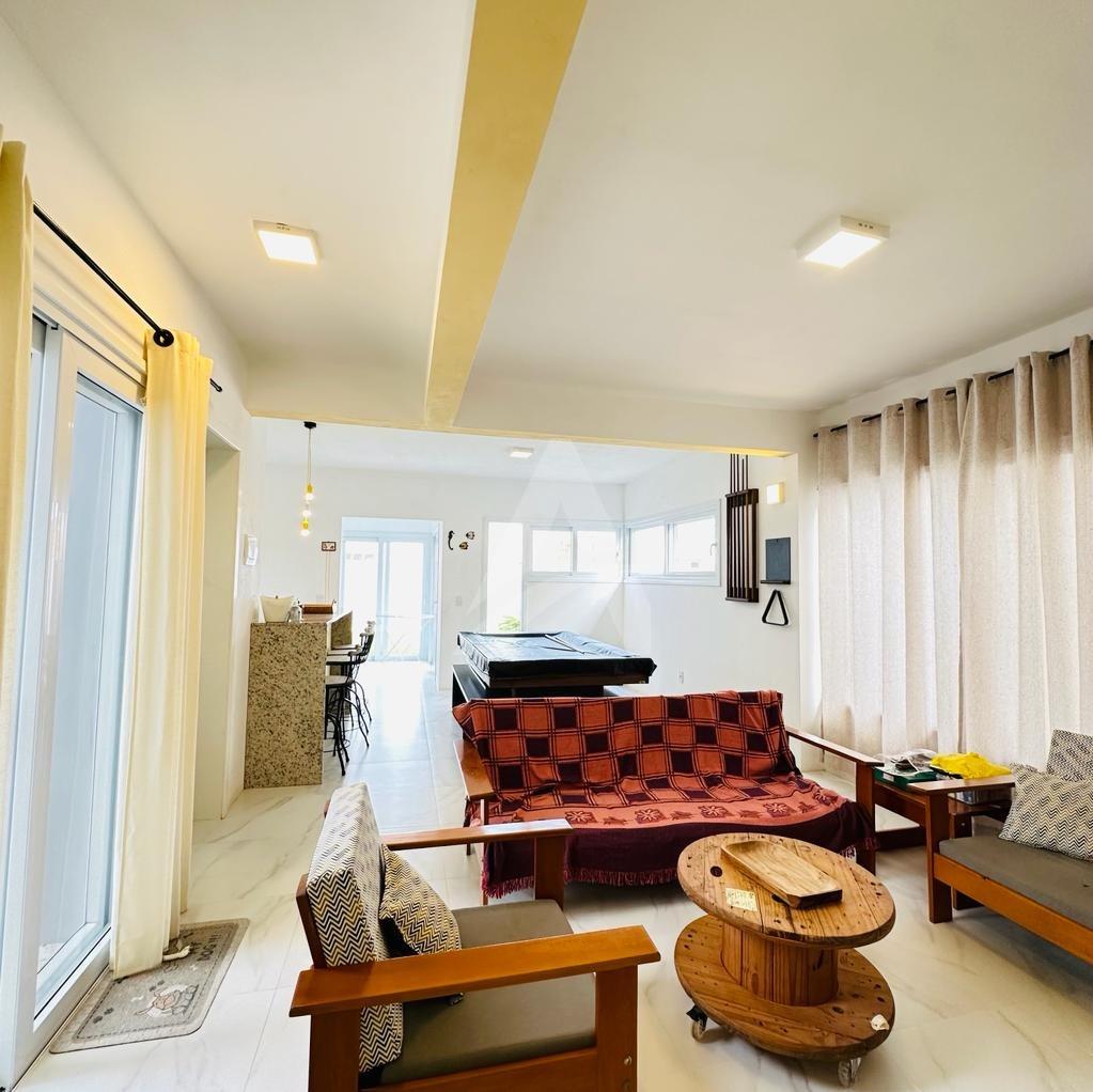 Casa de alvenaria e laje com estrutura para segundo piso com 108,06 m². Com 02 dormitórios sendo 01 suíte e outro com mezanino, sala com lareira, cozinha, banheiro, área gourmet. Terreno 10m x 29m, toda casa com porcelanato porto bello, tubulação para agua quente, mobiliada com 02 ar condicionado.
