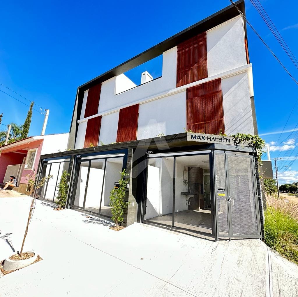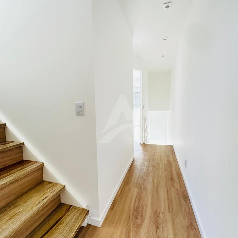 Sobrado em alvenaria, paredes duplas , com 103,39m² de área construída, contendo 03 dormitórios (sendo 01 suíte) com piso vinilico, sala e cozinha conjugada, com tampo de granito com misturador monocomando, banheiro com tampo em granito/mármore, lavabo, área coberta para automóvel com churrasqueira (com suporte), sacadas, Esquadrias com vidros temperados e brises deslizantes em madeira Garopeira, pintura Cetol, todas as portas com amortecimento em borracha, toda iluminação em placas de led e dicroicas em led pontuais, tubulação para agua quente, escada em metal, com degraus em madeira, permitindo ventilação. Uma casa diferenciada, elegante e aconchegante, funcional, dentro de uma proposta moderna e inovadora.
