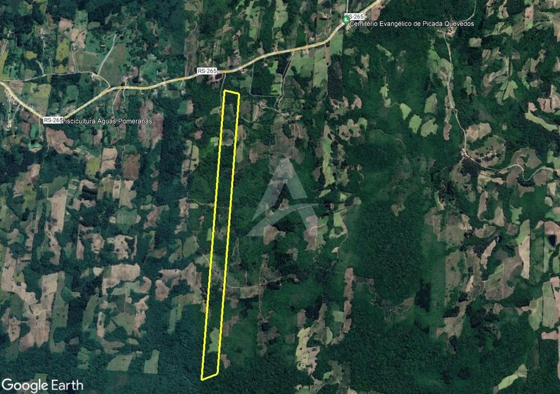 24 hectares de terras na localidade de Quevedos, à 50 metros da RS 265. Com sanga, sendo em torno de 10ha de aproveitamento para plantação.