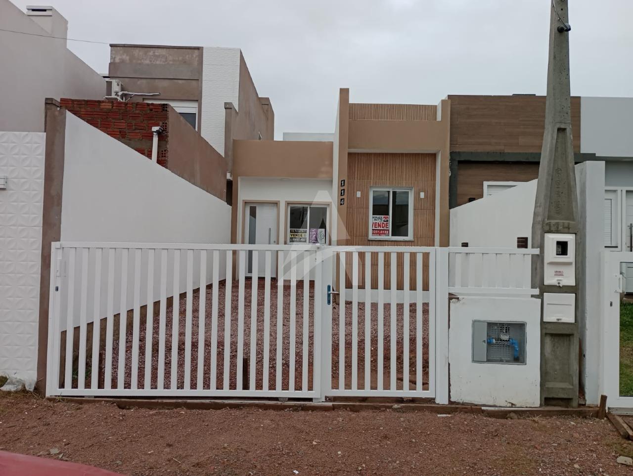 Casa em fase de acabamento, medindo 55,33 m² com dois dormitórios, sala cozinha, banheiro, pátio nos fundos;