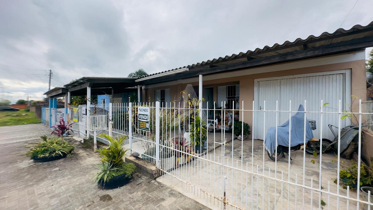 Casa de alvenaria e telhas com 88,95m² de área construída, contendo na casa da frente: 02 dormitórios, sala, banheiro, cozinha, despensa e lavanderia. Na parte dos fundos uma área gourmet com churrasqueira, dormitório, banheiro e cozinha. Terreno medindo 10m x 27,5m. Frente Sul.