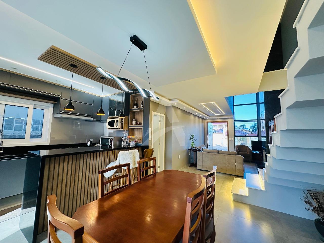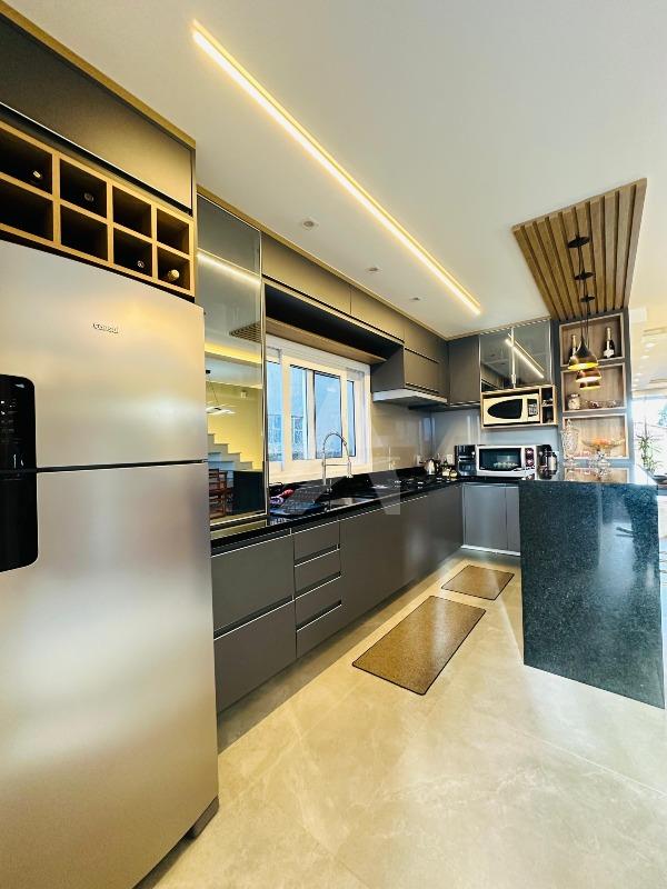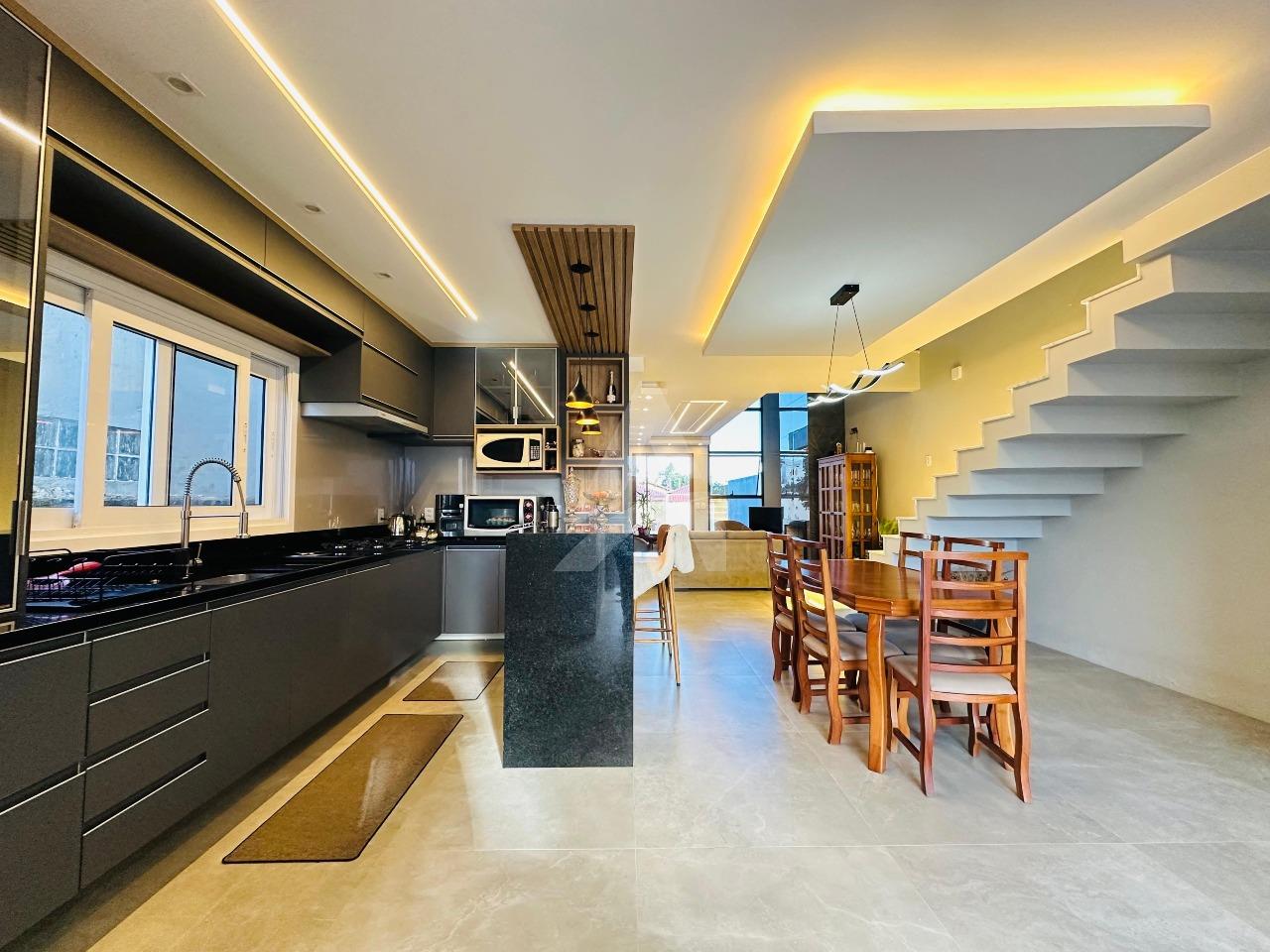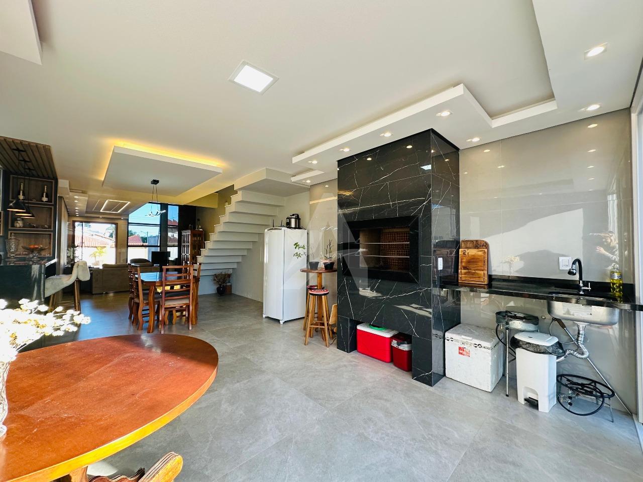 Sobrado moderno e de alto padrão que une conforto, elegância e praticidade para toda a família. Este imóvel oferece acabamentos de primeira linha, garantindo um ambiente sofisticado e acolhedor. A sala de estar com lareira cria um espaço perfeito para momentos de convivência e aconchego, enquanto a cozinha sob medida em conceito aberto, integrada à sala de jantar e à churrasqueira..
