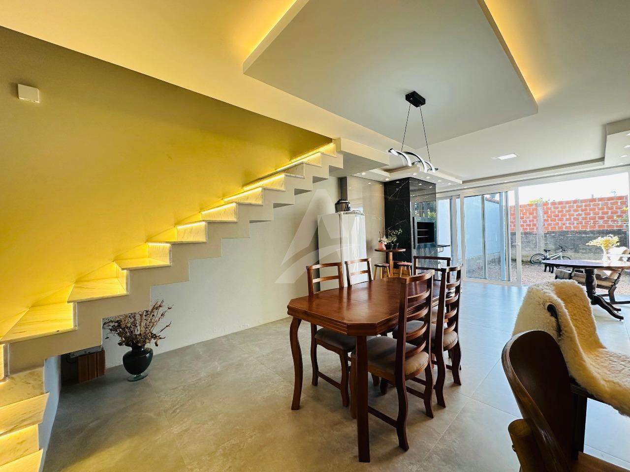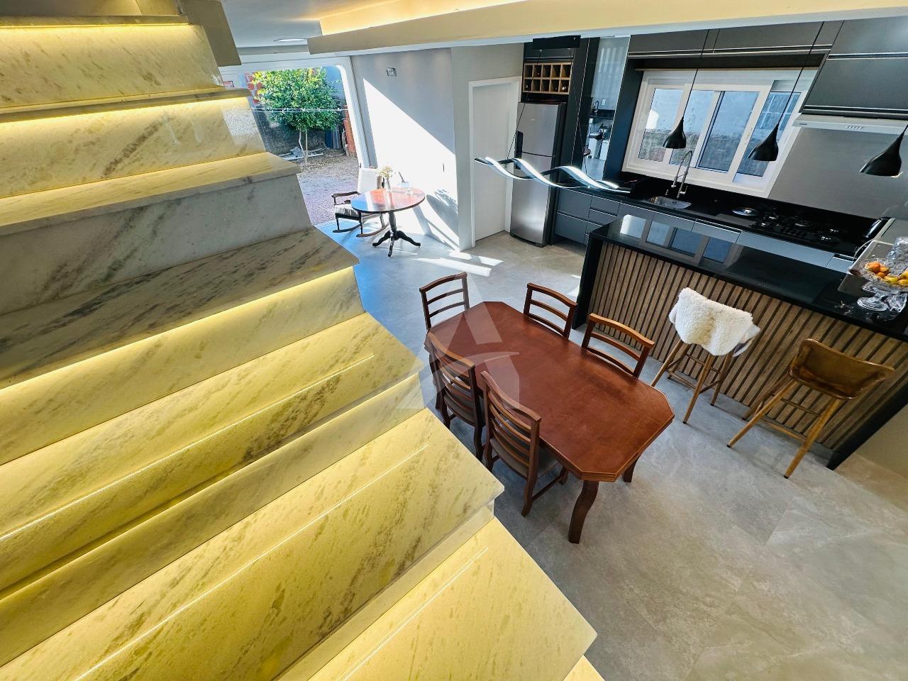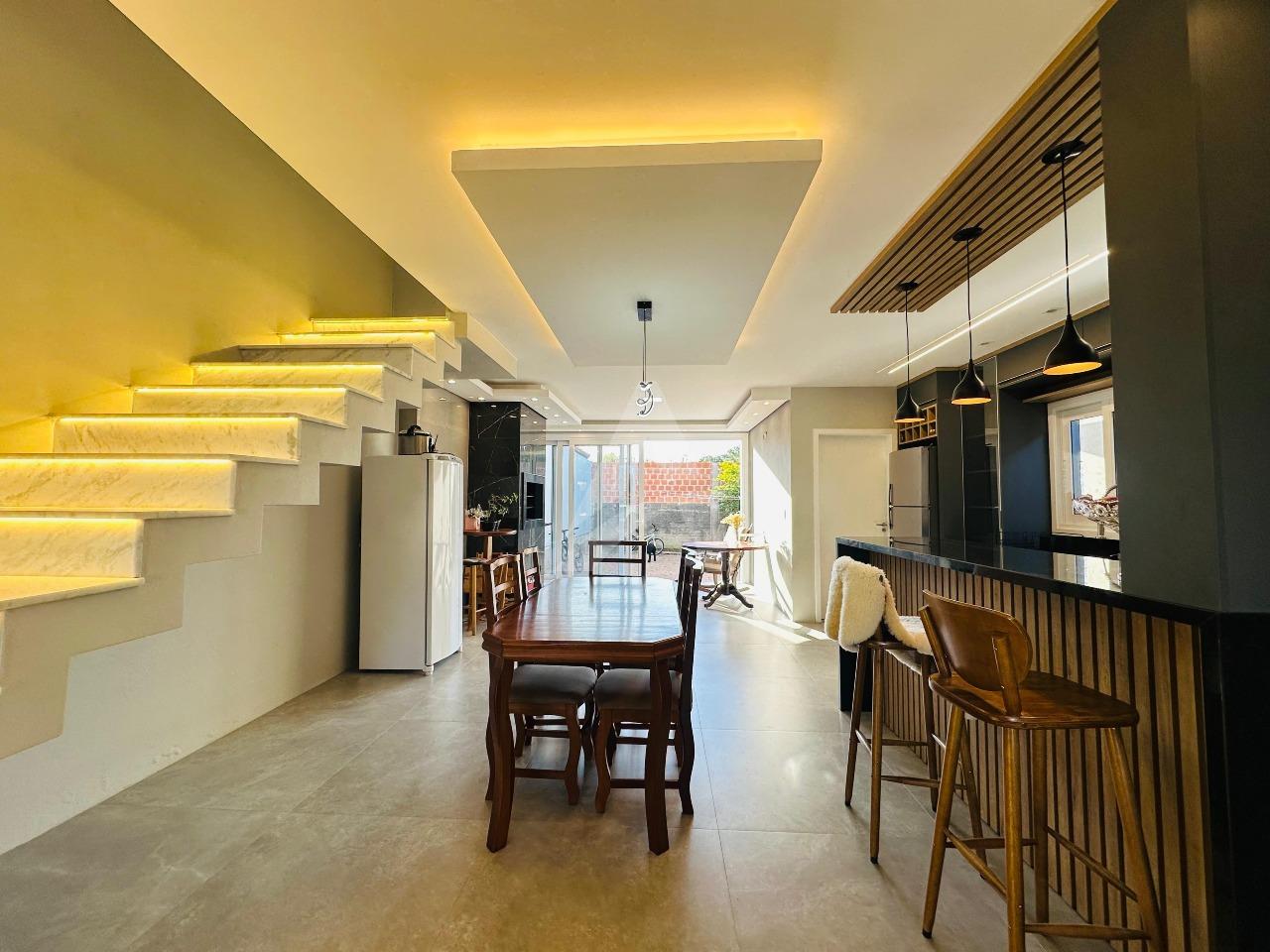 Sobrado moderno e de alto padrão que une conforto, elegância e praticidade para toda a família. Este imóvel oferece acabamentos de primeira linha, garantindo um ambiente sofisticado e acolhedor. A sala de estar com lareira cria um espaço perfeito para momentos de convivência e aconchego, enquanto a cozinha sob medida em conceito aberto, integrada à sala de jantar e à churrasqueira..