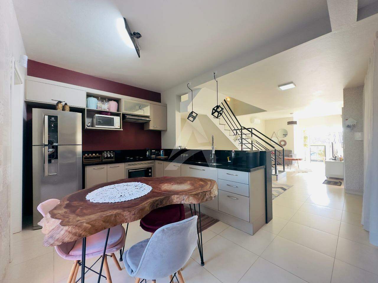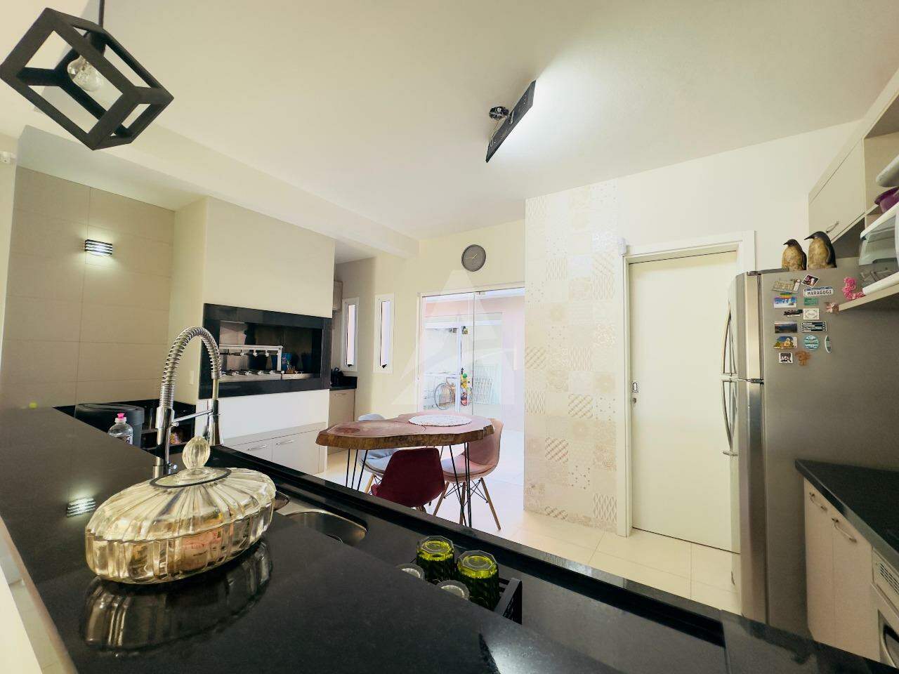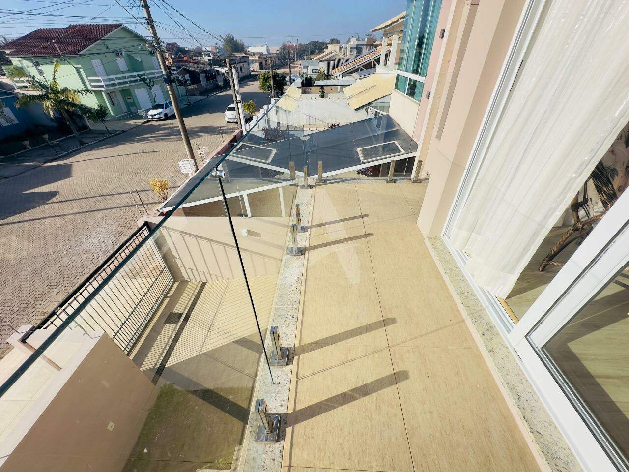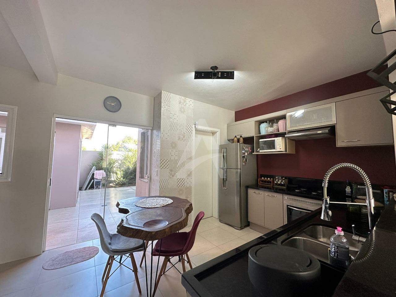 Sobrado Moderno, frente norte a Rua Santo Antônio com 143m2 de área construída, contendo uma sala, sala de jantar e cozinha sob medida integrada, churrasqueira rotativa em inox, fogão a lenha, lavabo, lavanderia, escada em mármore e corrimão em alumínio preto, parte superior conta com 01 suíte com sacada e guarda corpo em vidro temperado, 02 dormitórios com sacada individual, banheiro com box de vidro temperado e armário, ar condicionados, também possui um abrigo para carro, jardim portão eletrônico, alarme, cerca elétrica e um anexo com 14,85m2. Obs: Vários itens ficam na residência.