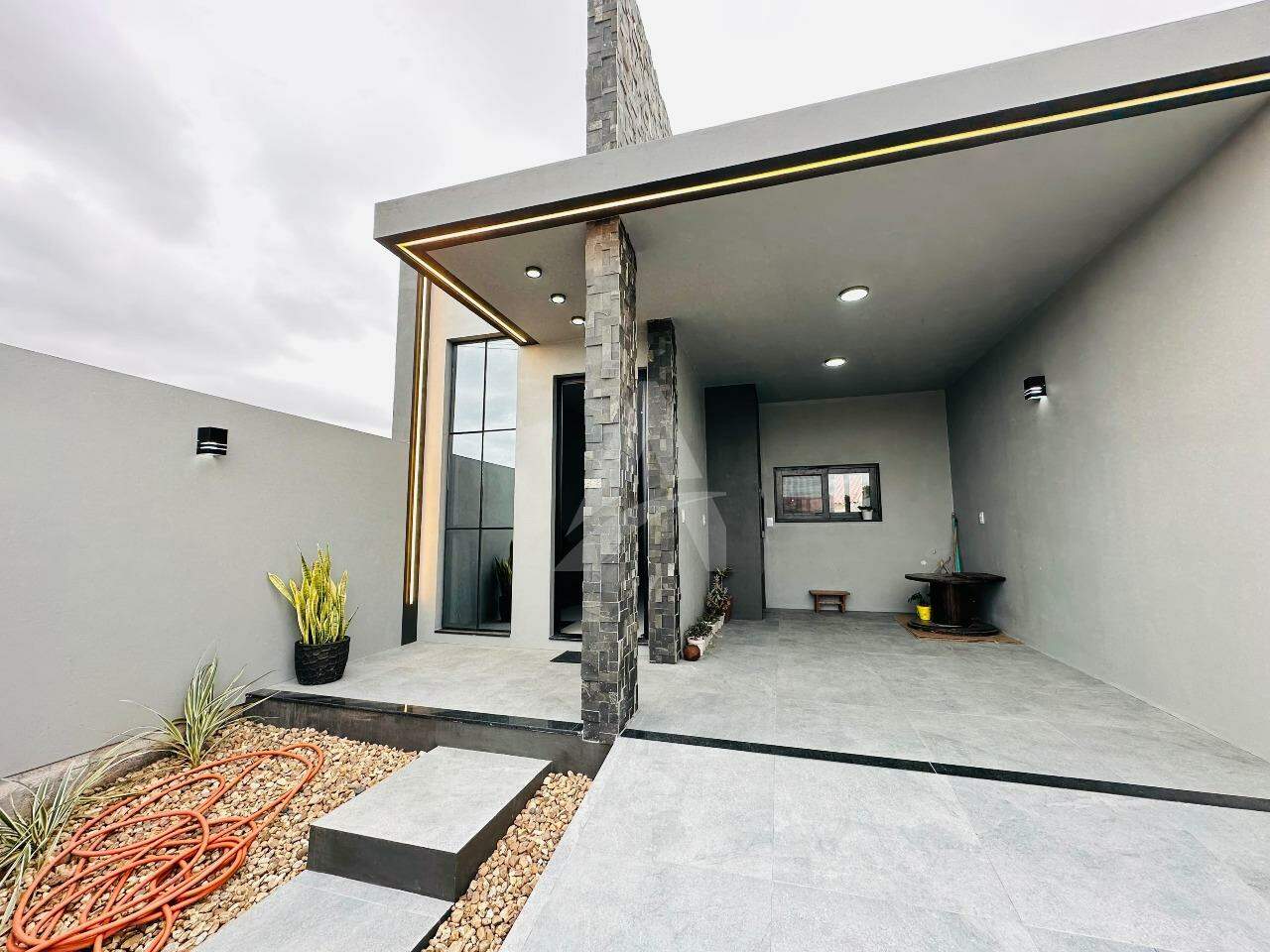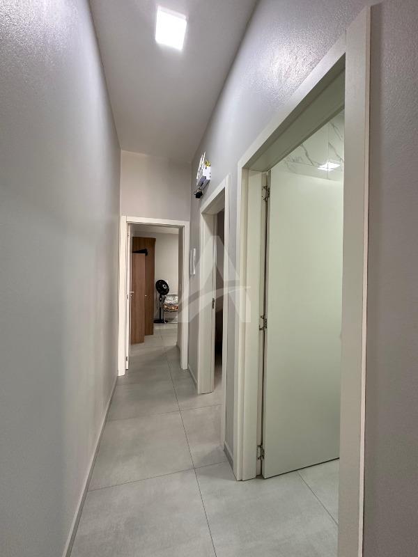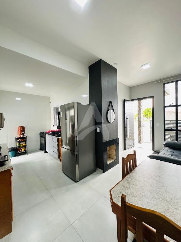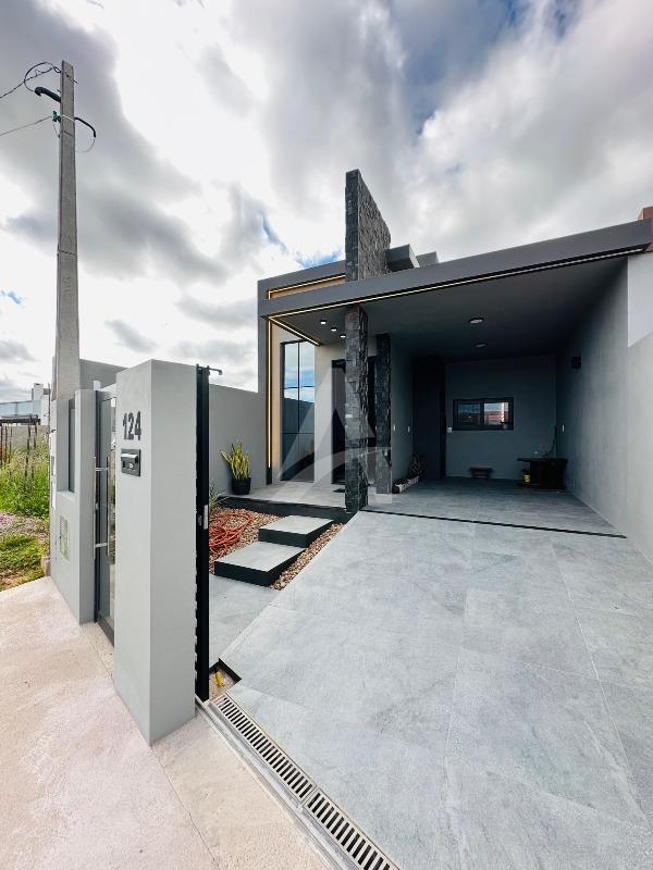 Casa nova de alvenaria e laje no Loteamento Avenida, com 71,93m² de área construída, contendo sala com lareira, cozinha, 02 dormitórios, 01 banheiro, lavanderia e garagem com churrasqueira. Terreno com área de 126,00m², medindo 6,00 x 21,00 metros. Imóvel em ótima localização, com rua calçada.