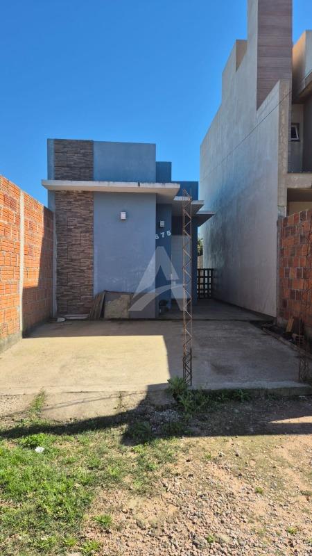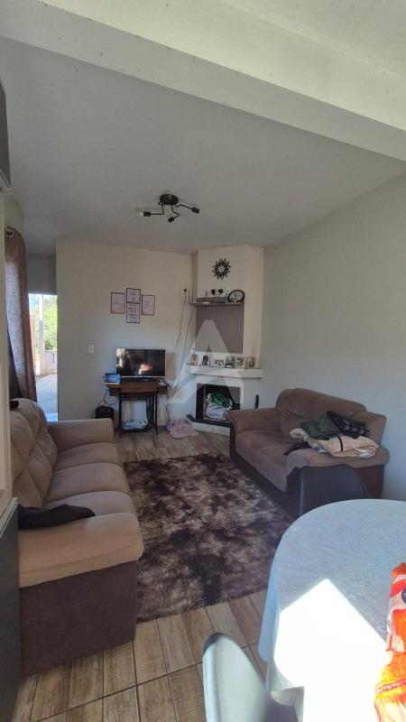 Casa em alvenaria com 53,62 m² de área construída com 02 dormitórios, sendo 01 suíte, sala de estar com lareira e cozinha, 01 banheiro social e lavanderia. Frente sul.