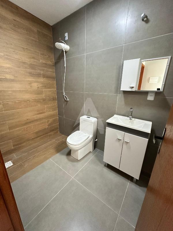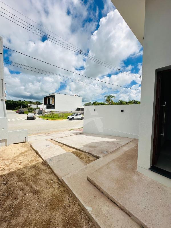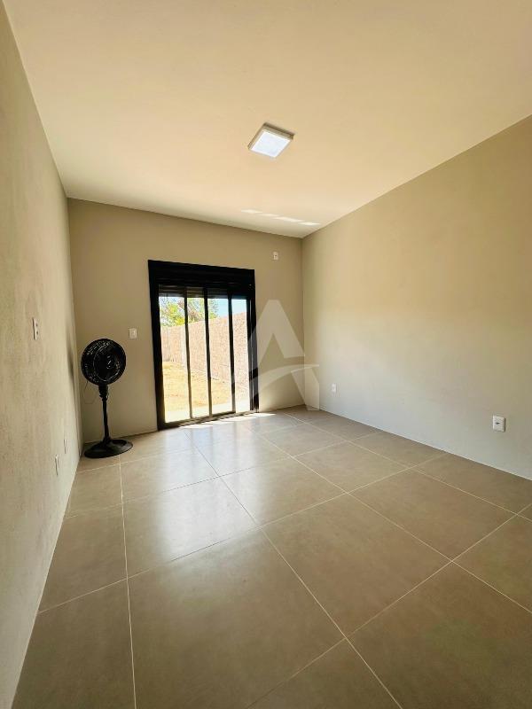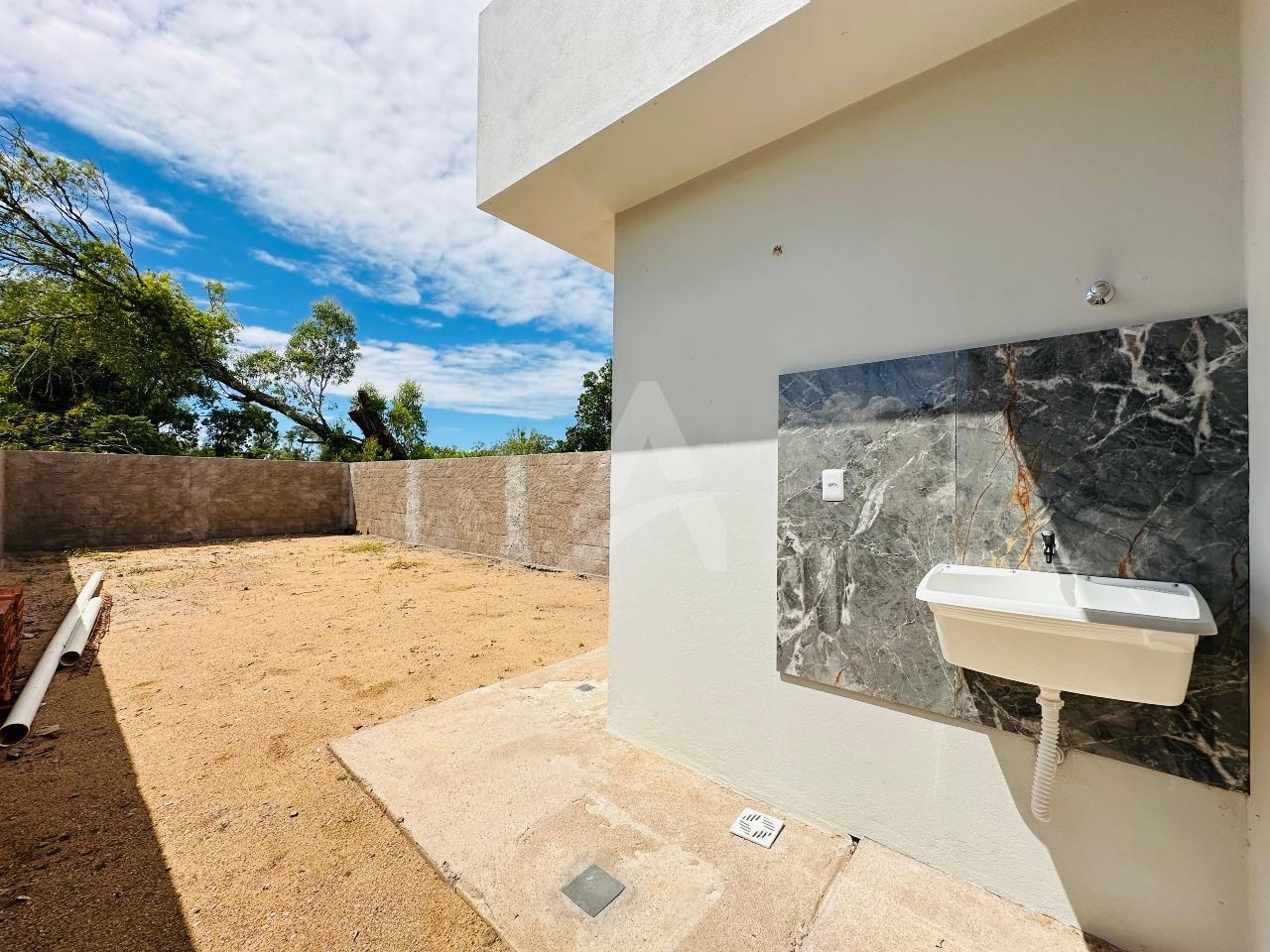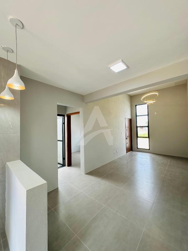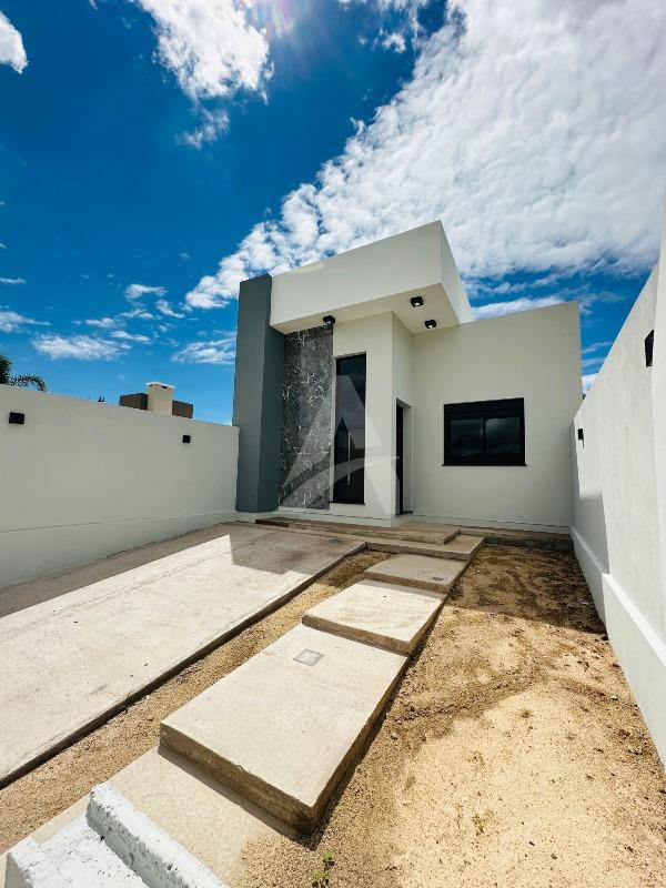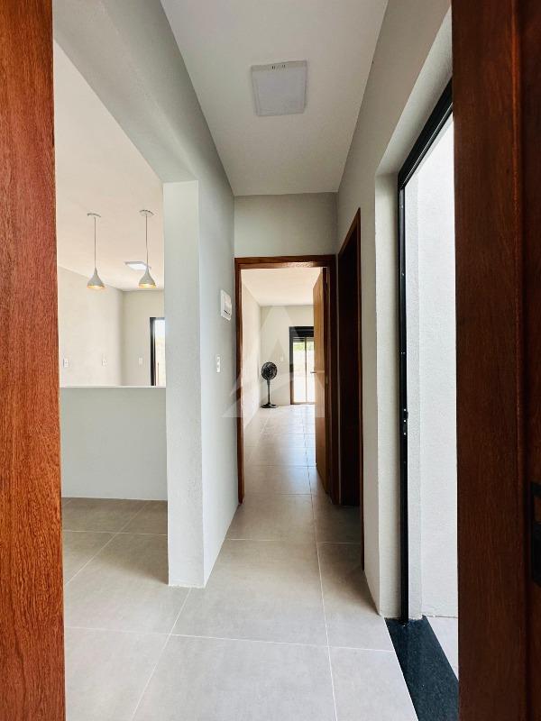 Casa de alvenaria e laje com 64 m², Moderna , contendo 02 dormitórios, sala de estar com espera para lareira e com pé direito alto e um lindo lustre , cozinha em conceito aberto, 01 banheiro, espera para churrasqueira e pátio amplo e todo murado. Terreno 6 x 30 , frente norte no loteamento fazenda do Sobrado. Apta à financiamento.