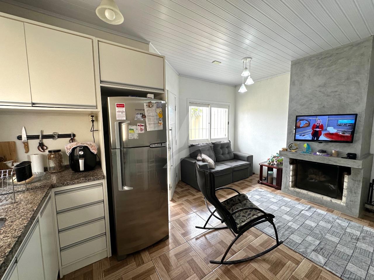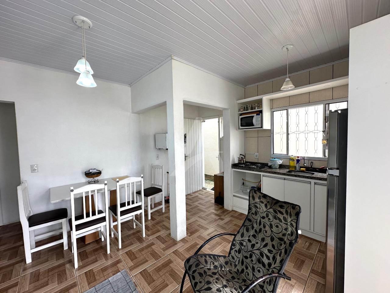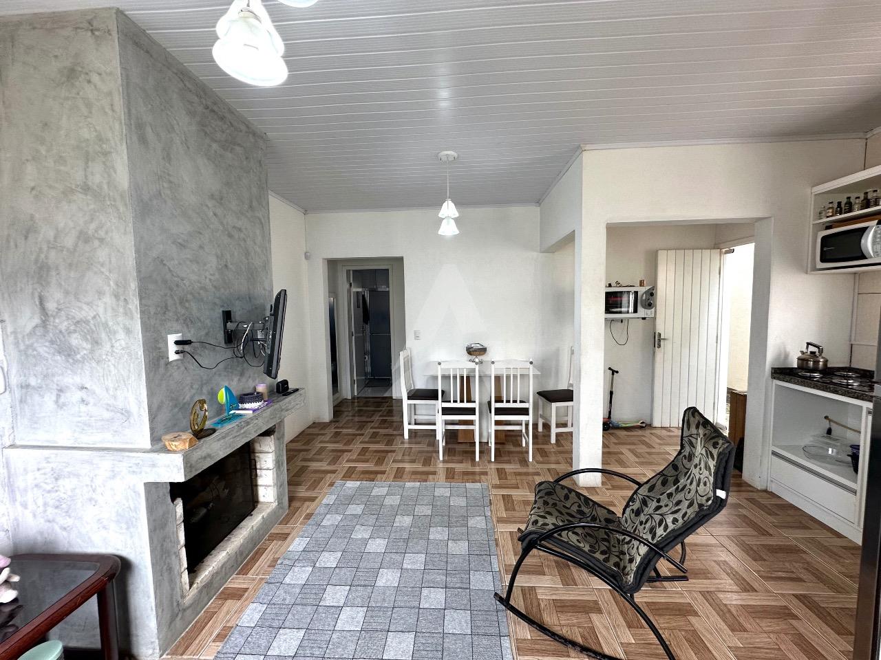 Casa de alvenaria :MOBILIADA, com aproximadamente 80m2 : 02 dormitórios, cozinha com móveis planejados, sala com lareira , banheiro lavanderia ,portão eletrônico. Fundação com estrutura para segundo piso. A casa será vendida com:os móveis planejados : mesa com 04 cadeiras, 02 ar condicionados de 12.000 Btus cada, sofá na sala de estar, móveis no banheiro, 02 roupeiros.