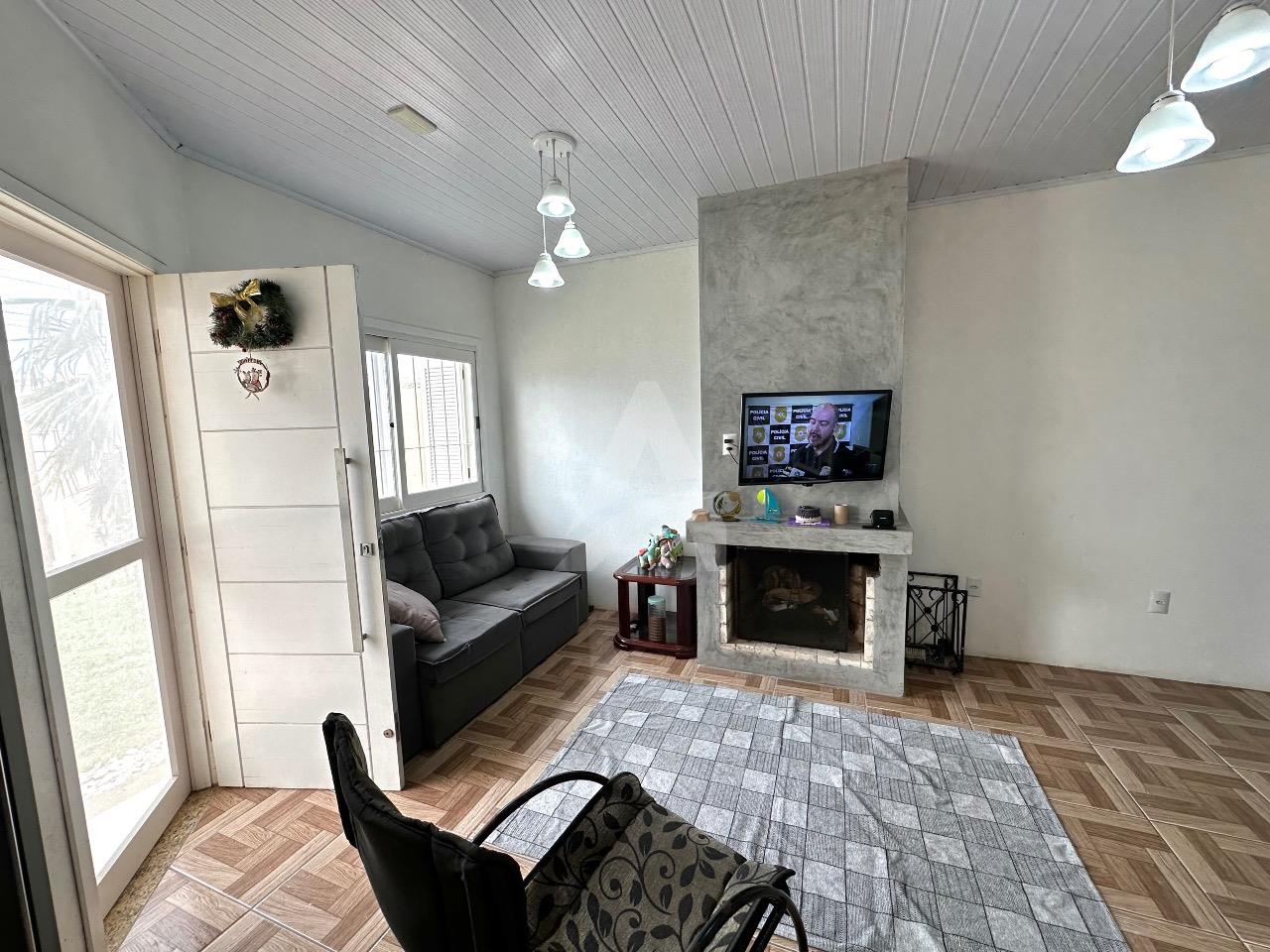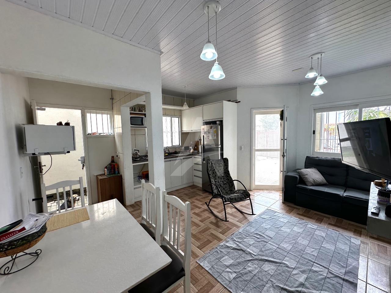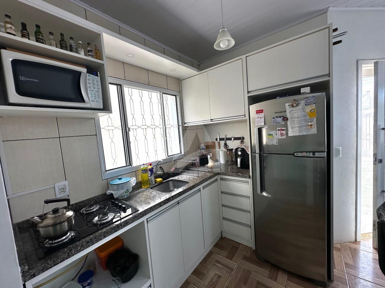 Casa de alvenaria :MOBILIADA, com aproximadamente 80m2 : 02 dormitórios, cozinha com móveis planejados, sala com lareira , banheiro lavanderia ,portão eletrônico. Fundação com estrutura para segundo piso. A casa será vendida com:os móveis planejados : mesa com 04 cadeiras, 02 ar condicionados de 12.000 Btus cada, sofá na sala de estar, móveis no banheiro, 02 roupeiros.
