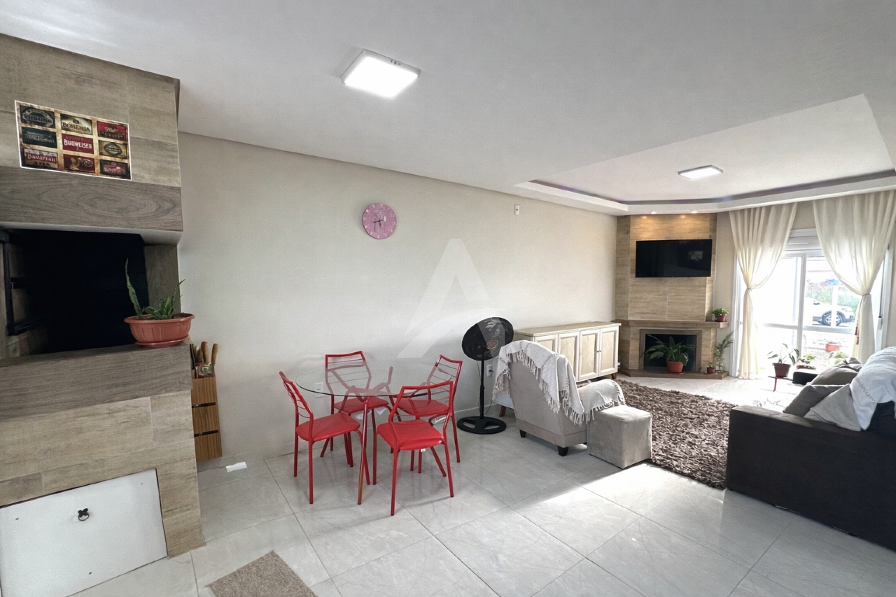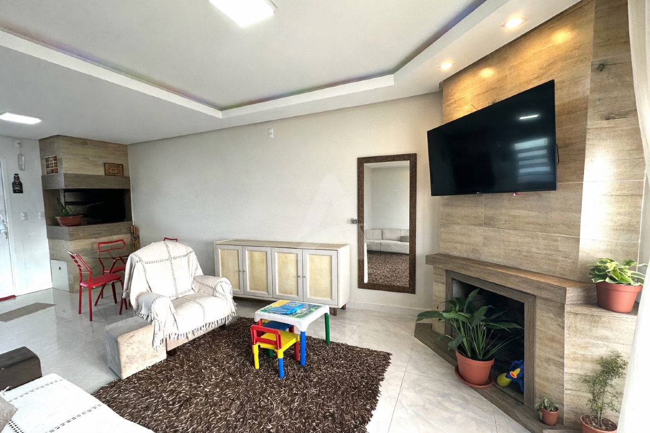O imóvel conta com sala de estar com lareira, cozinha com móveis sob medida, churrasqueira, escritório e banheiro social.