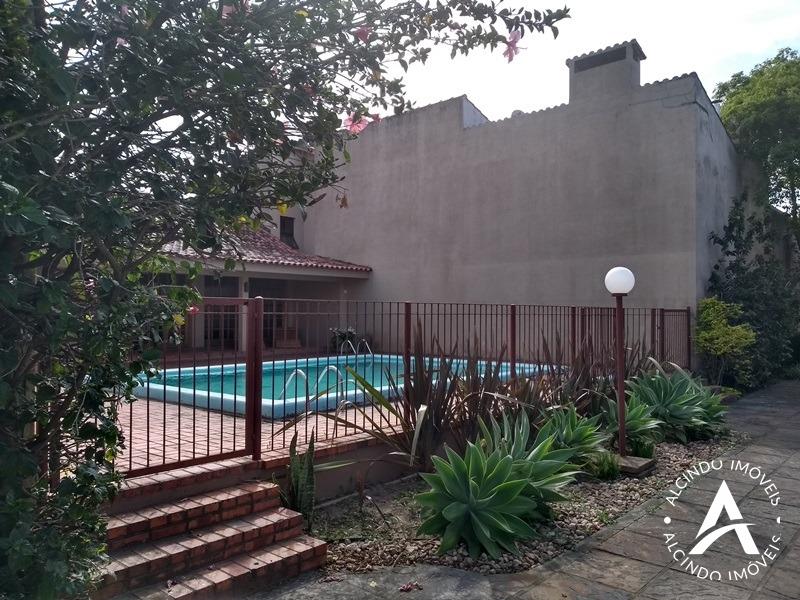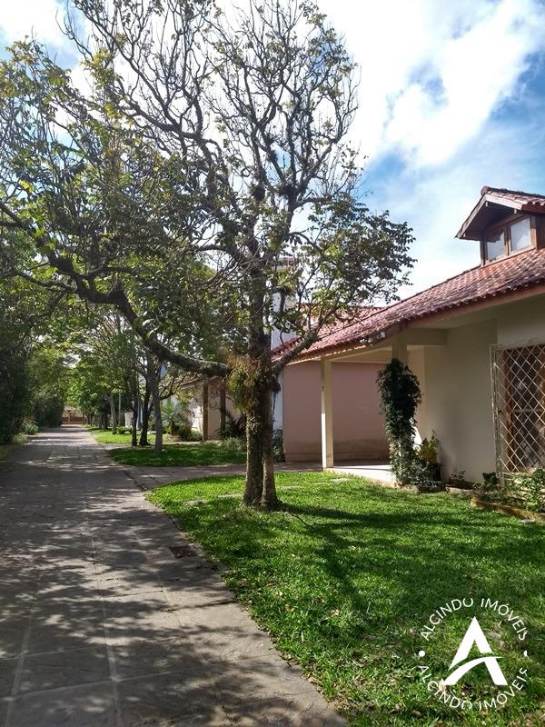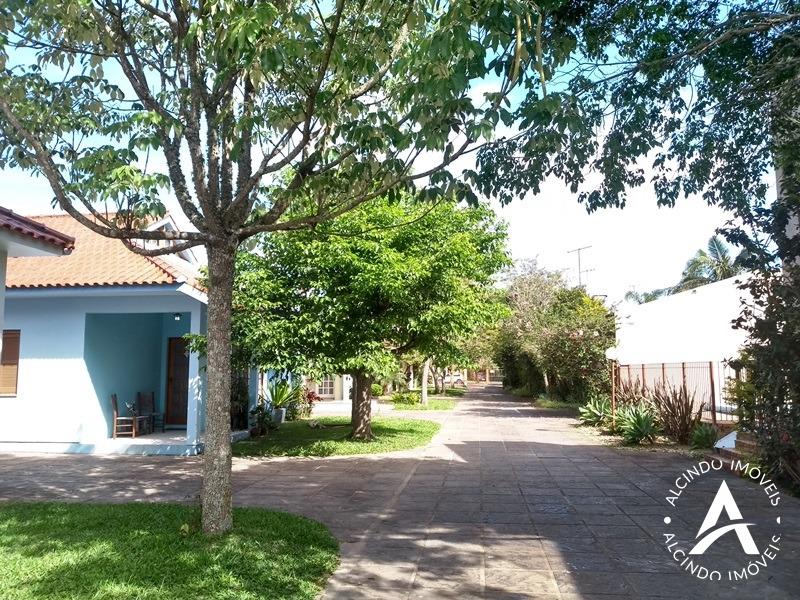 Vende-se casa de alvenaria: 243 m² com 01 suíte com banheira, 04 dormitórios, sala com lareira, sala jantar, banheiro social, copa-cozinha, lavanderia ,despensa, garagem para 03 carros, churrasqueira e banheiro. 1º piso com 02 dormitórios e área opção de fazer banheiro também. Parte condominial: piscina, salão de festas com 95 m² , banheiros, acesso para o salão de festas também pela av. Isolina Passos. Apenas 07 casas de excelente padrão no condomínio, entrada pelas duas ruas laterais. Residencial Rua das Flores e também residencial de muitos pássaros, lugar de ar puro e tranquilidade. Imovel localizado no bairro balneario em São Lourenço do Sul,RS.