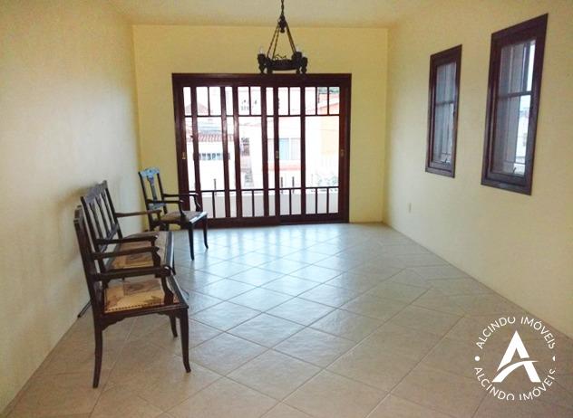 Sobrado com 129,21m². Primeiro andar: 02 dormitórios, sala, cozinha ampla, banheiro, área de serviço, térreo: garagem para dois carros com churrasqueira, banheiro, peça e porão com 50m². Terreno: 14 x 15,60. Lateral da prefeitura municipal e meia quadra da praça.