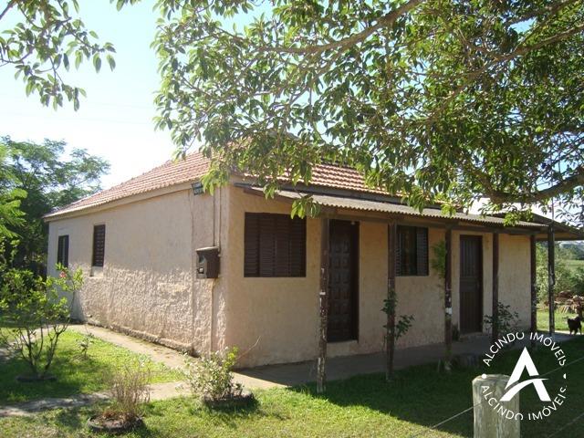 02 ha com casa de 55m² de área construída e galpão 9,5m x 17m. Propriedade com pomar e mata nativa com arroio nos fundos. Passa linha de ônibus na frente .