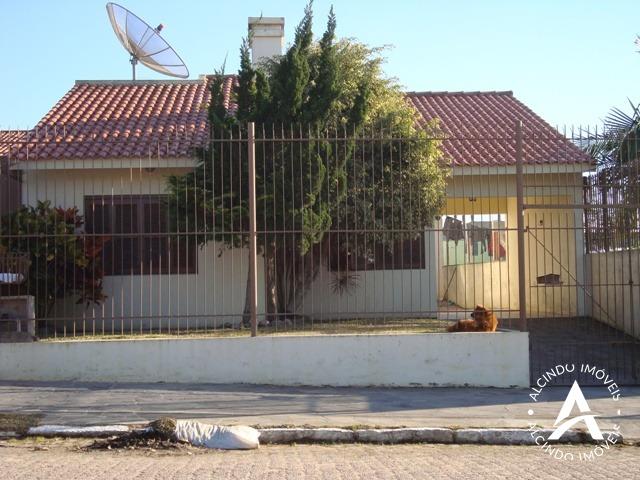 Casa de alvenaria laje e telhas : 142m² com 2 dormitórios, sala de estar, copa-cozinha, banheiro, abrigo lateral, salão com churrasqueira e garagem. Terreno 10 x 25.
