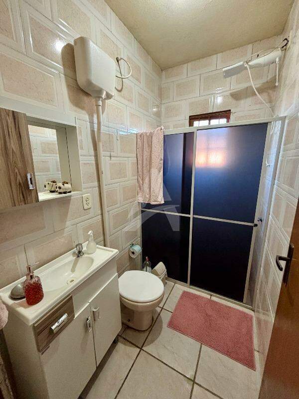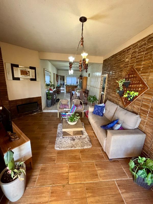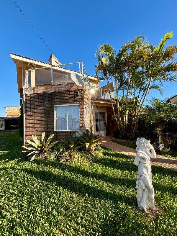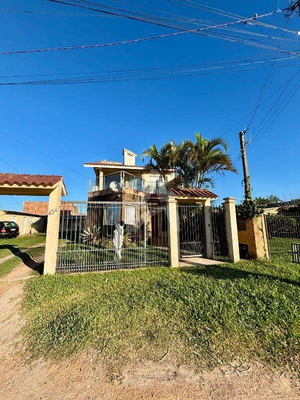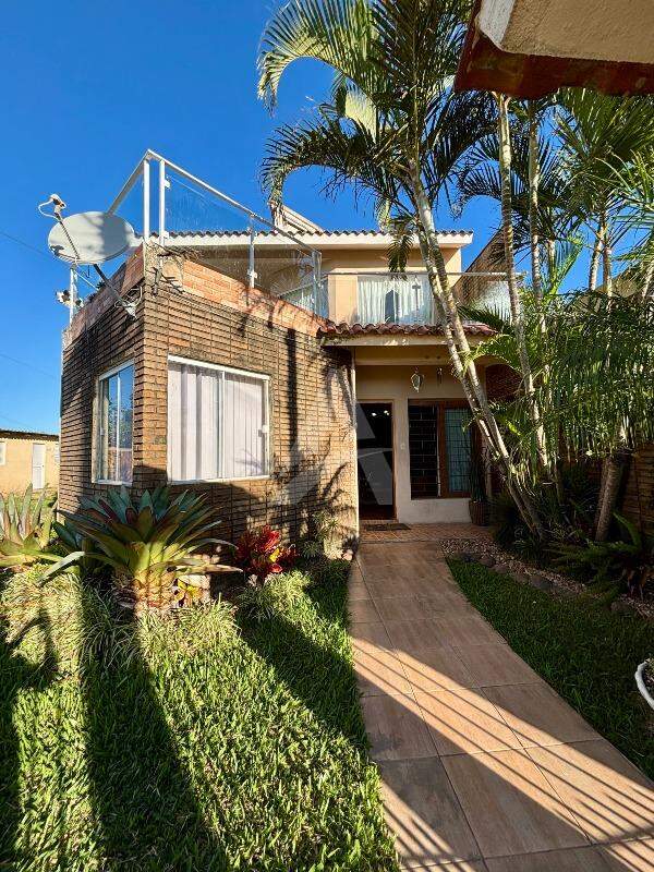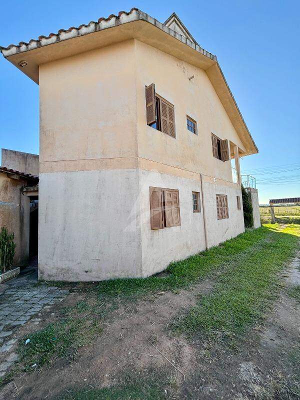 Sobrado no Bairro Barrinha em São Lourenço do Sul/RS, com 205,00m² de área construída, contendo no pavimento térreo sala de estar com lareira, sala de jantar, cozinha, 03 dormitórios (sendo 01 suíte), 01 banheiro social. No pavimento superior contém sala e cozinha conjugadas, 02 dormitórios, 01 banheiro, área de serviço e sacada. Possui garagem com área de 42,20m², com vaga para 02 carros e churrasqueira. Terreno com área de 300,00m², medindo 10,00 x 30,00 metros. Frente solar norte.