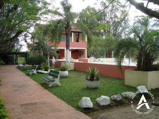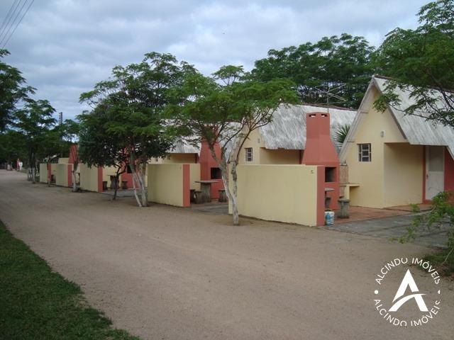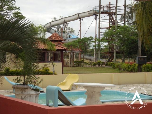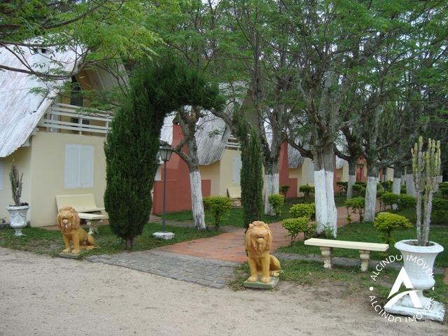 14 cabanas com 25.000 m² e com 01 apartamento contendo 02 dormitórios, sala-cozinha, banheiro, peça comercial e escritório. Apartamentos com 03 dormitórios, sala, cozinha, banheiro e churrasqueira. Imóvel com 05 ha com 6 piscinas, área de lazer, toboáguas, salão de festas, quadra de vólei, praça, cancha de futebol, charrete e caiaques.