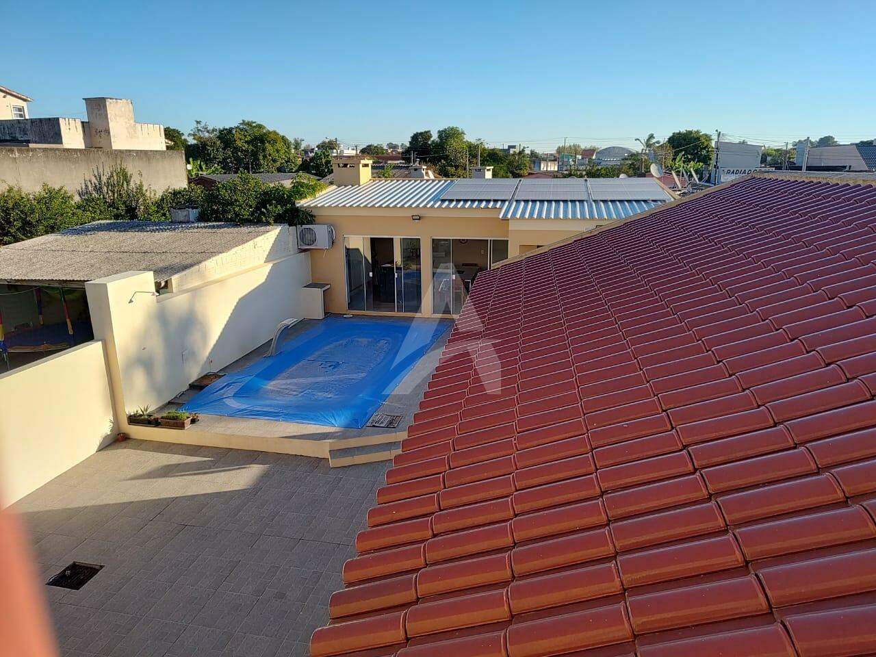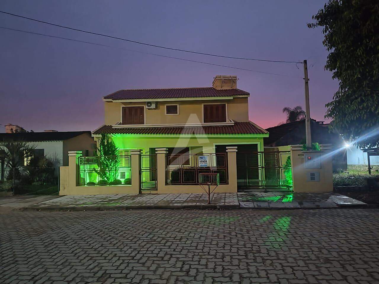Vende-se sobrado em alvenaria e laje, em São Lourenço do Sul, com 250,34m² de área construída; Térreo: Sala, sala de jantar, cozinha, banheiro, lavanderia, garagem para 3 carros. Segundo piso: 3 dormitórios, sala de TV, banheiro. Fundos Salão gourmet, completo, banheiro, deposito. Pátio todo murado, com piscina de 3m x 6m.Obs; Adicionais, Placa solar, alarme, a ares condicionados, sistema de alarme.