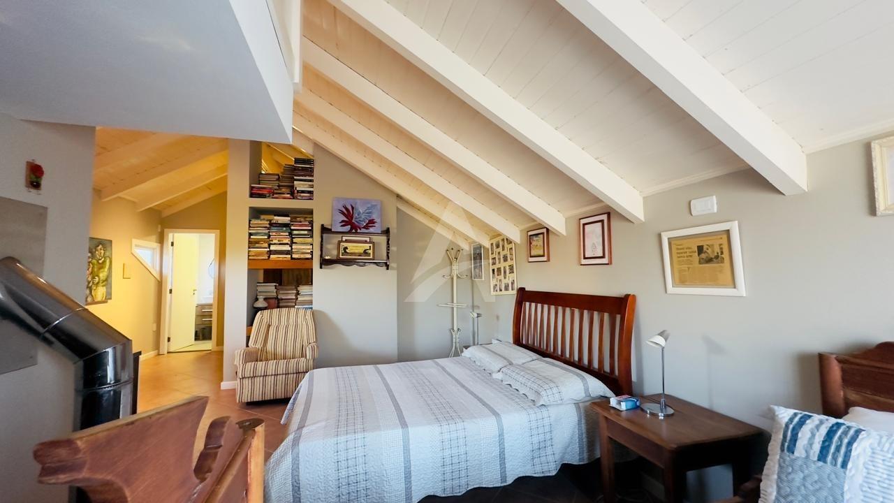 Casa de alvenaria : 220m2 , sala com moveis sob medida e cristaleira com 02 ambientes com vista da lagoa , com lareira, cozinha sob medida com churrasqueira, área de jardim, lavanderia, corredor com área aberta , lavabo, 01 suite com moveis sob medida, 02 dormitórios, garagem . Pátio fechado com jardim e área coberta com churrasqueira, Primeiro andar com 60m2 com 01 suite master . Terreno: 10 x 45. Com energia solar, agua quente, captação de agua da chuva, alarme. Imóvel iluminado e bem ventilado. Frente norte.