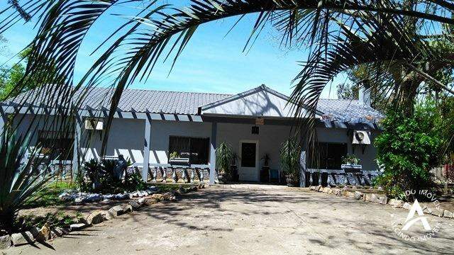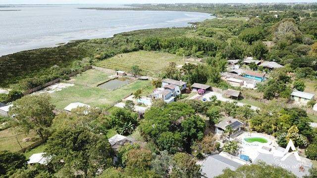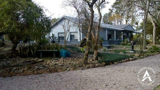 1 hectar de terra em condomínio, com uma luxuosa residência de alvenaria e laje , com 4 dormitórios, sendo 2 suítes, sala de estar com dois ambientes, 02 banheiros, sendo 1 com banheira de hidro, cozinha, escritório, lavanderia, garagem para 3 carros, sala de festas com churrasqueira e fogão campeiro, agua quente, piscina, jardinagem e arvores frutíferas. com acesso a lagoa, com linda vista para navegação.