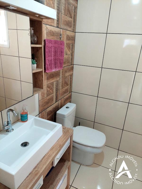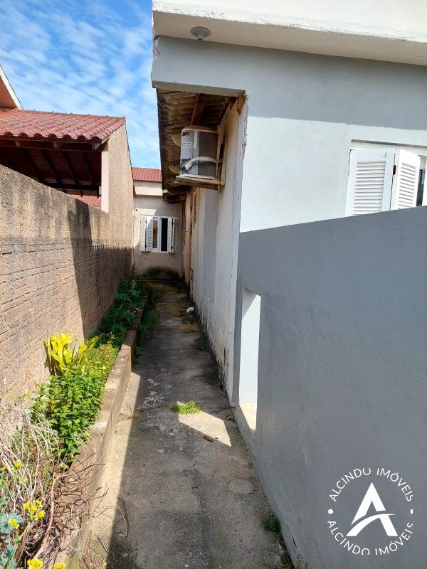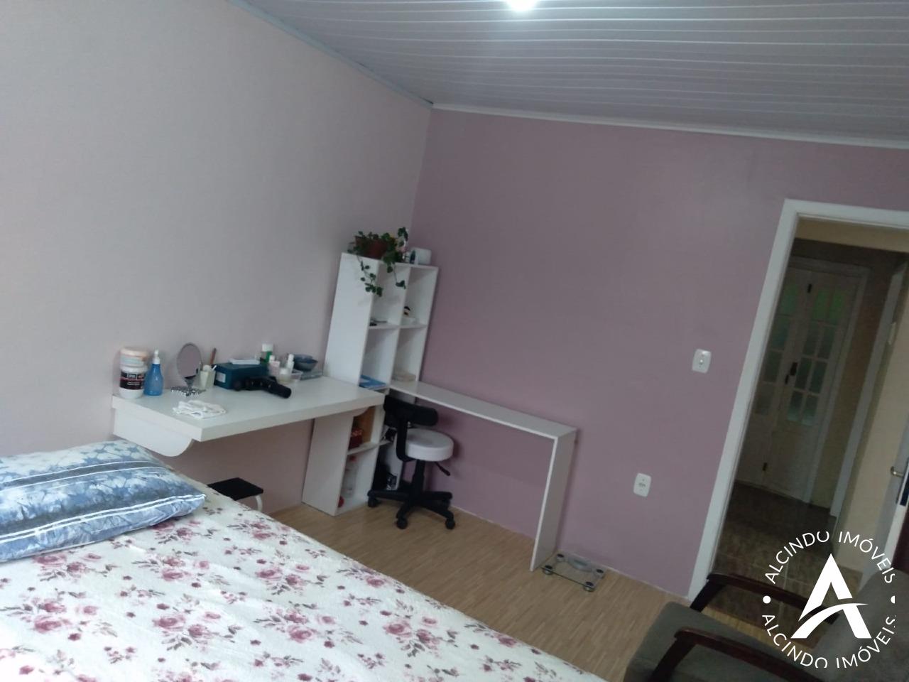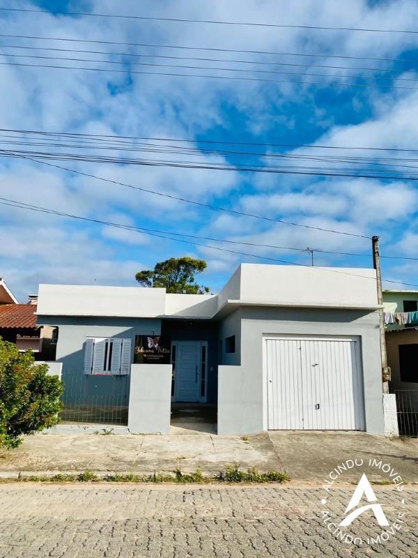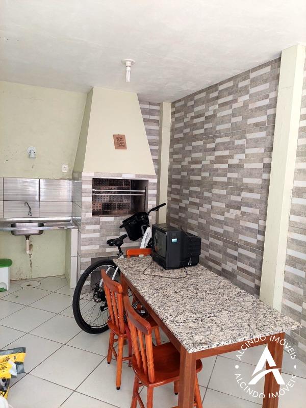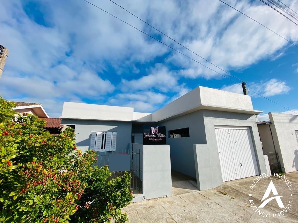 Casa de alvenaria com 98 m² de área construída, contendo 01 sala de estar, cozinha, 03 dormitórios, 02 banheiros, garagem e churrasqueira.