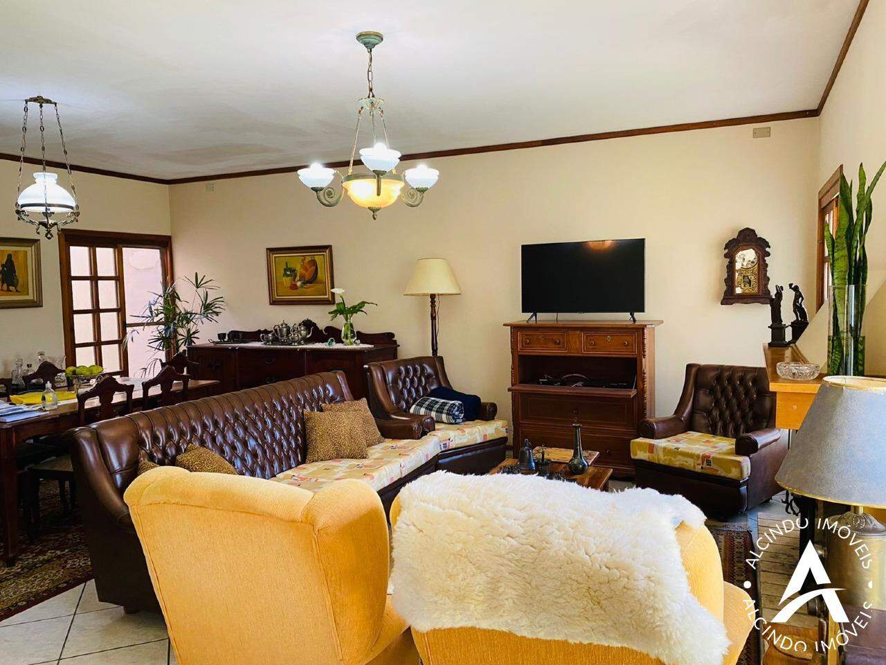 Casa de alvenaria , laje e telhas: 265m² com 04 dormitórios, 01 suíte, escritório, sala de estar com lareira, banheiro social, copa-cozinha, lavanderia, depósito, garagem coberta para 02 veículos com churrasqueira e dependência de empregada. Pátio fechado também nos fundos. Frente oeste no Condomínio Rua das Flores com salão de festas e piscina. Obs: Piso com aquecimento, móveis sob medida. Monitoramento, portões eletrônicos. Localizada na zona nobre . Aceita outro imóvel no negócio. Condomínio R$ 300,00 com a água incluída.