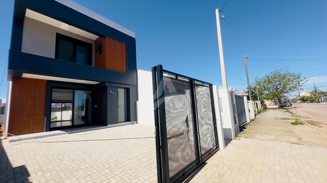 Vende-se casa moderna , no bairro navegantes em São Lourenço do Sul, com água quente, com área de 136,80m², contendo no pavimento térreo sala de estar com lareira, sala de jantar, cozinha, lavabo e lavanderia, e, no pavimento superior 01 suíte ampla com sacada, 02 dormitórios e 01 banheiro. Terreno com área de 225,00m², medindo 7,50 m x 30,00 metros. Localizado perto de escolas, instituto de beleza e supermercados. Frente oeste.