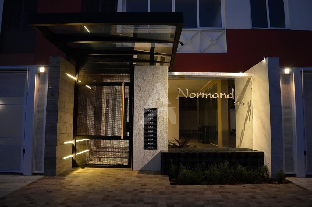 Apartamento: 402, no Condomínio Normandie, Com 01 suite, 01 dormitório, banheiro social, sala e cozinha integradas com churrasqueira. Espera para chuveiro elétrico ou a gás, espera para split em todos os cômodos. Com elevador e 01 box garagem.