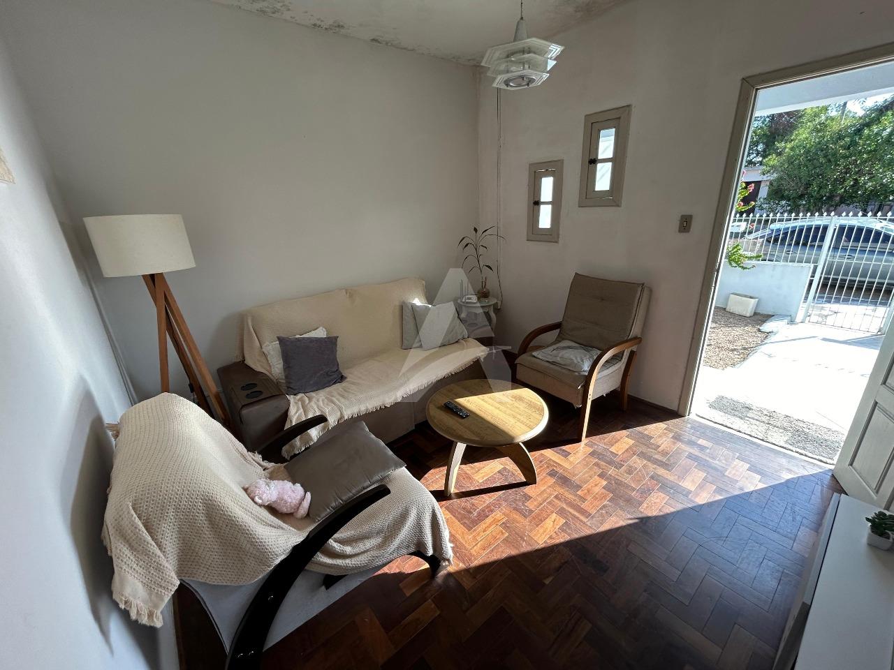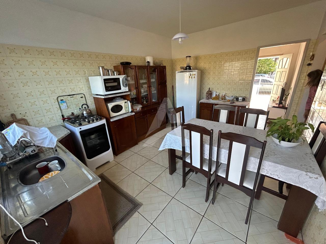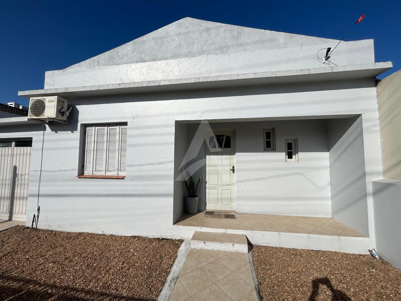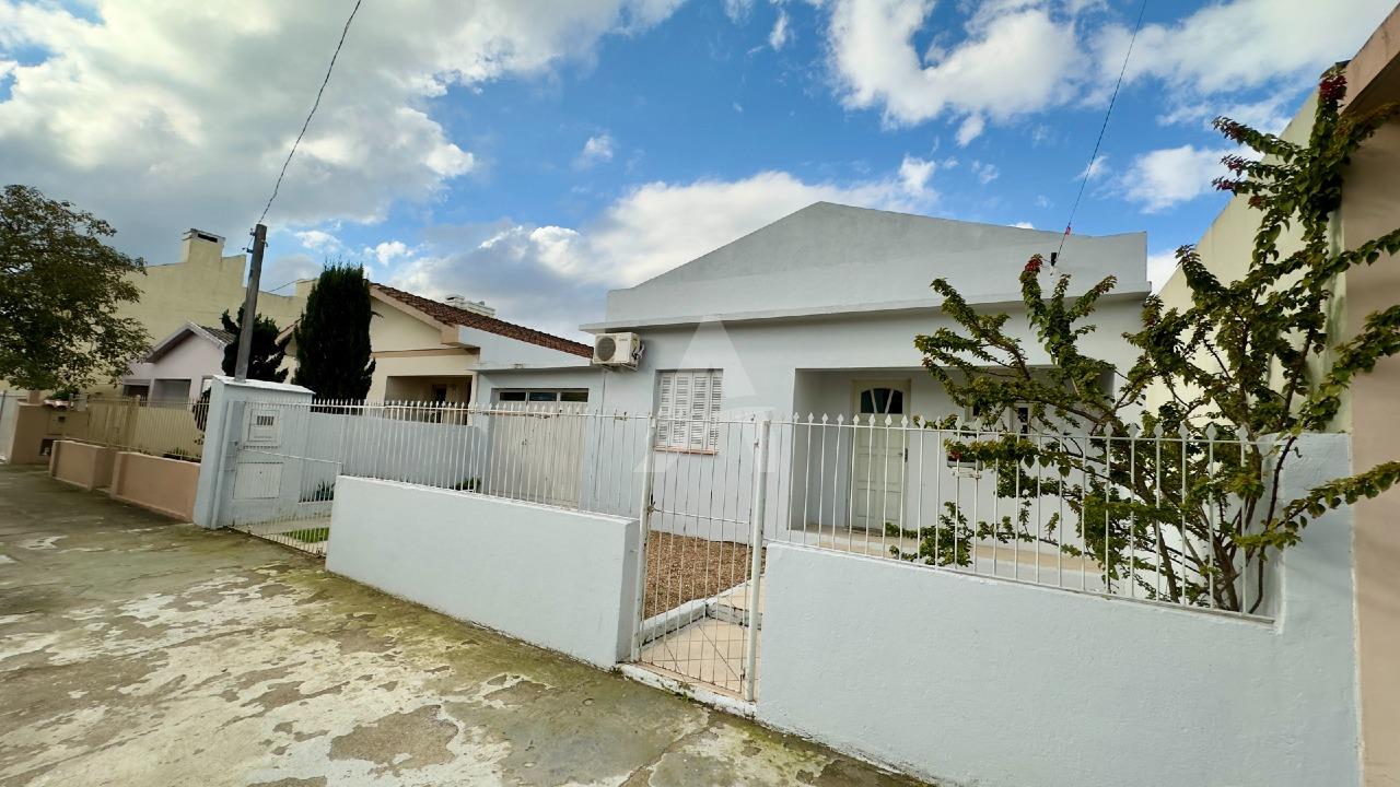 Casa de alvenaria com 61,70m², contendo sala, cozinha, 2 dormitórios, banheiro e lavanderia. Garagem com 51,40m², com churrasqueira. Pátio amplo nos fundos. Terreno medindo 10,00x40,00m. Frente Oeste.