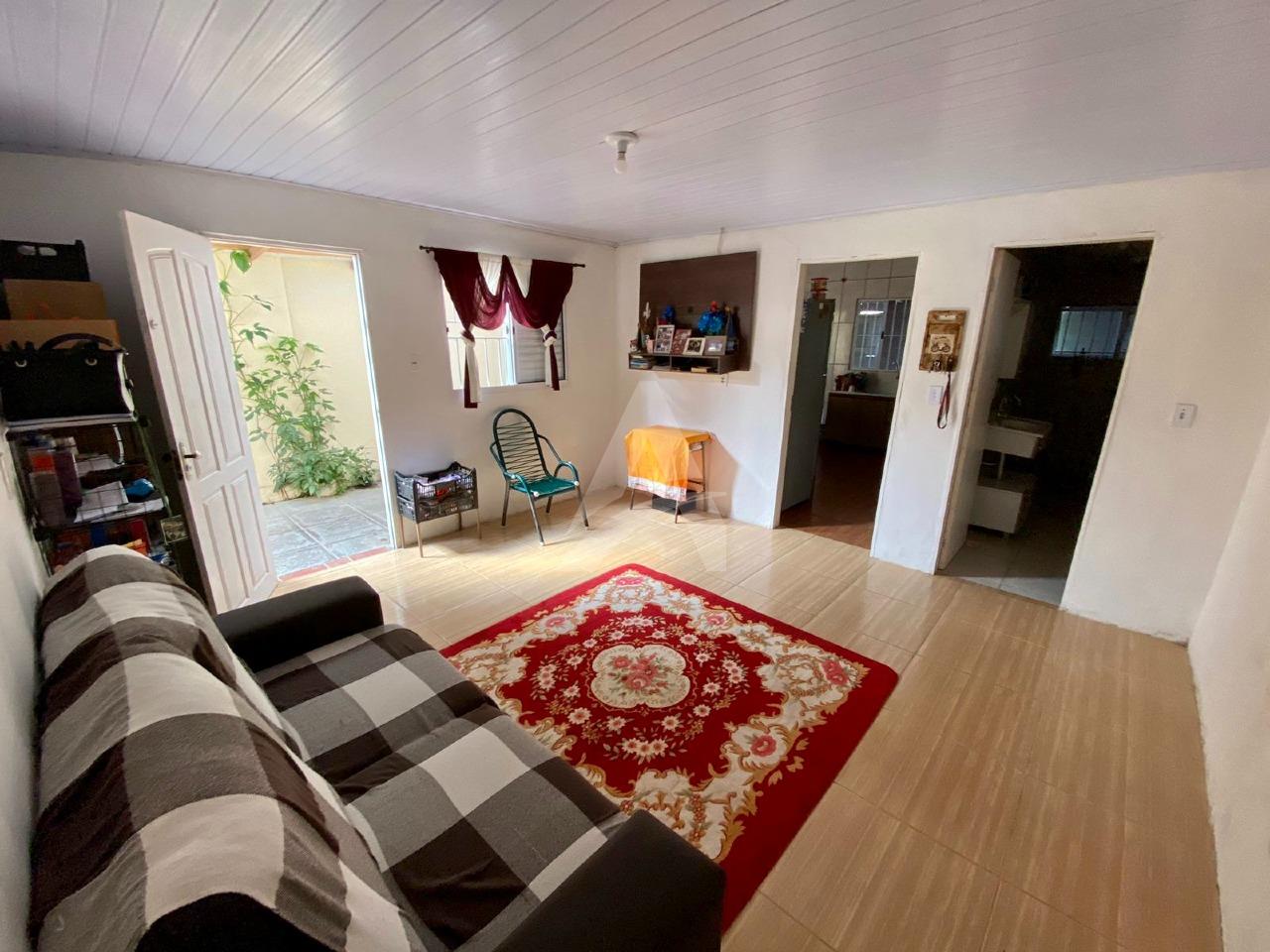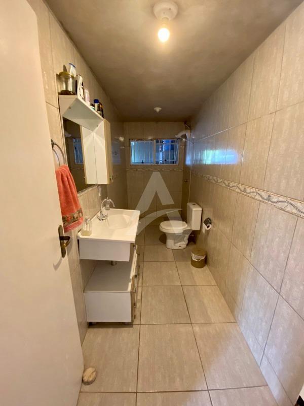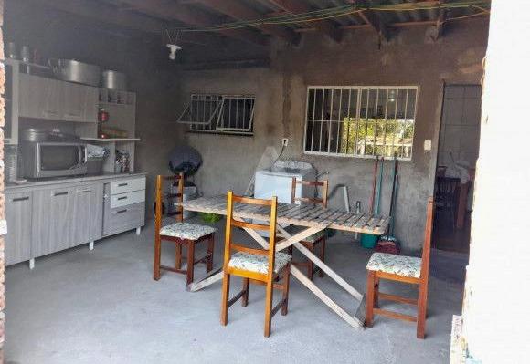 Casa de alvenaria, forro e telha 6mm, com 75,00m², contendo sala de estar, cozinha com churrasqueira, 2 dormitórios e 2 banheiros. Pátio amplo nos fundos. Frente Norte. Terreno medindo 6,80x55,00. Nos fundos tem um novo cômodo em construção (nova cozinha).