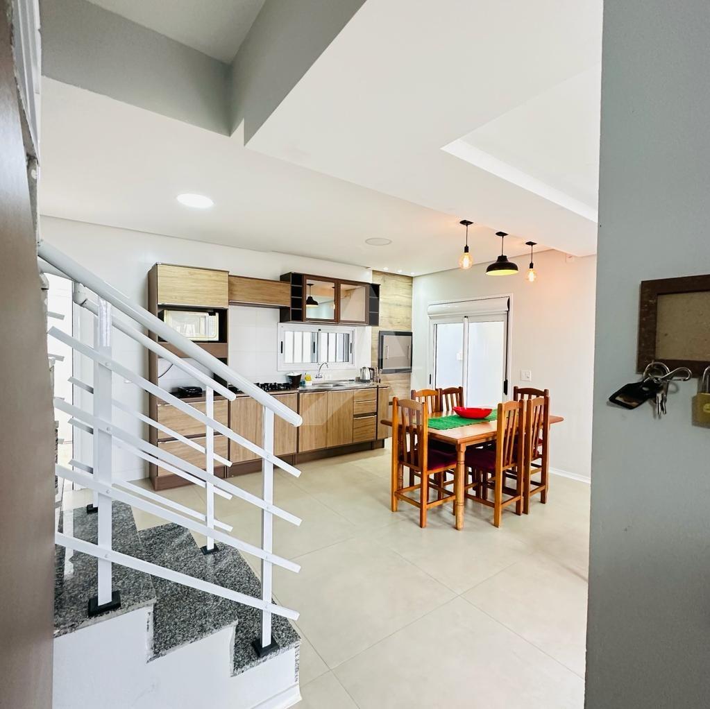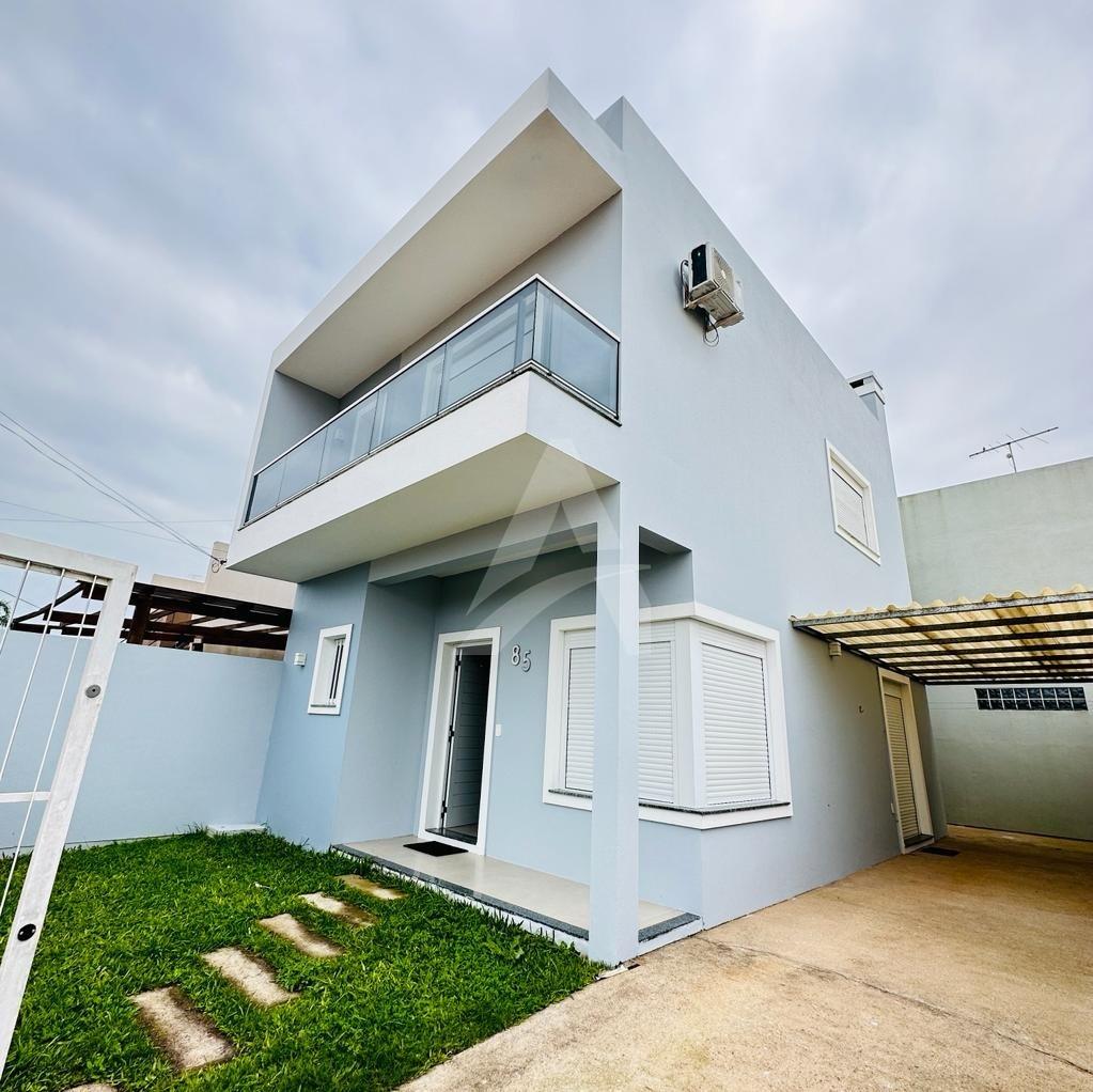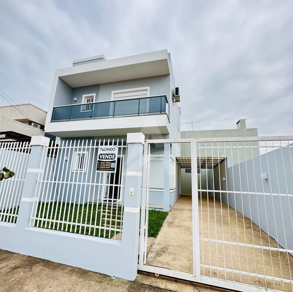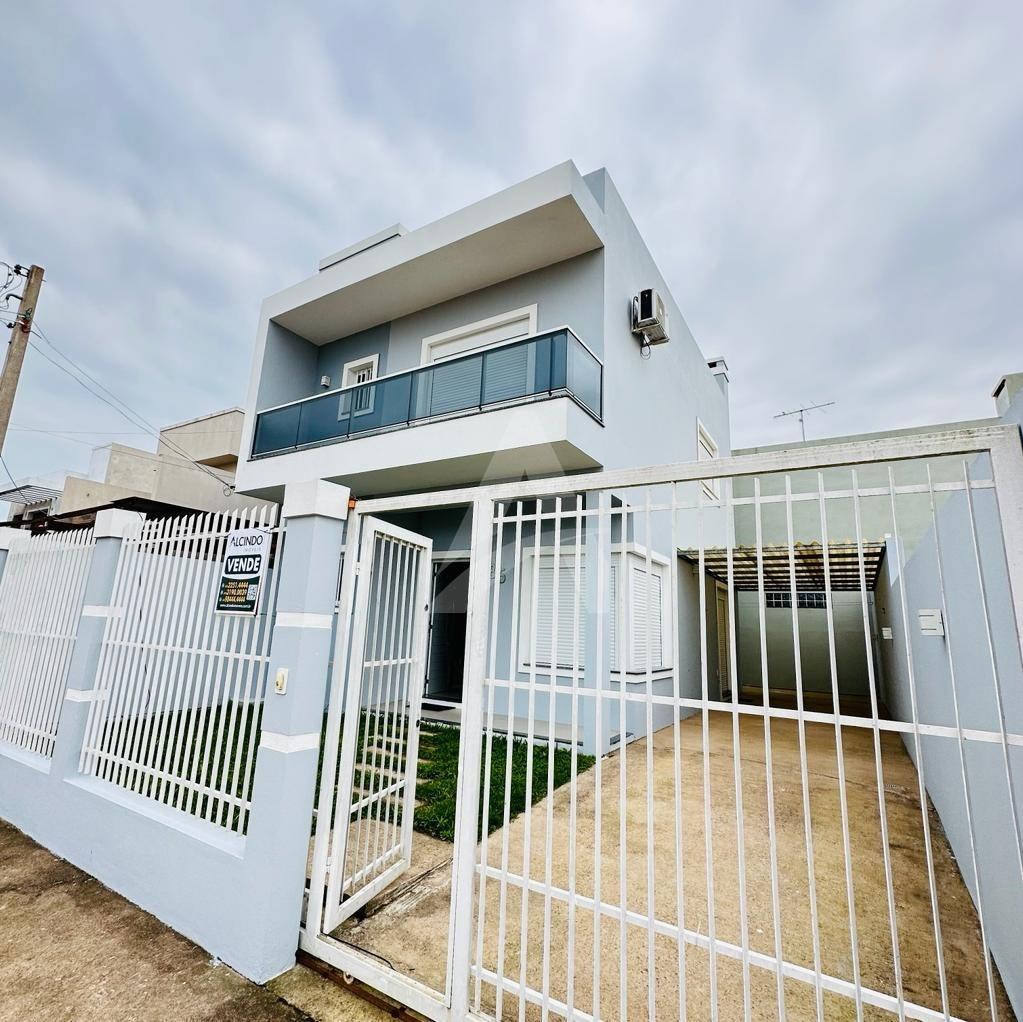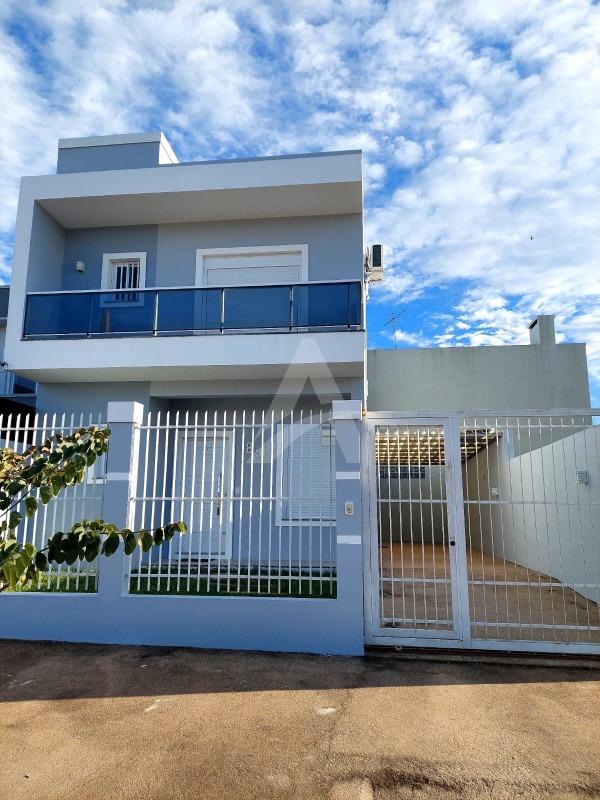 Lindo sobrado em alvenaria com 03 dormitórios sendo todos com piso flutuante, 01 banheiro, sala de estar com cozinha conjugada com churrasqueira, lavabo, área nos fundos e garagem para dois carros.