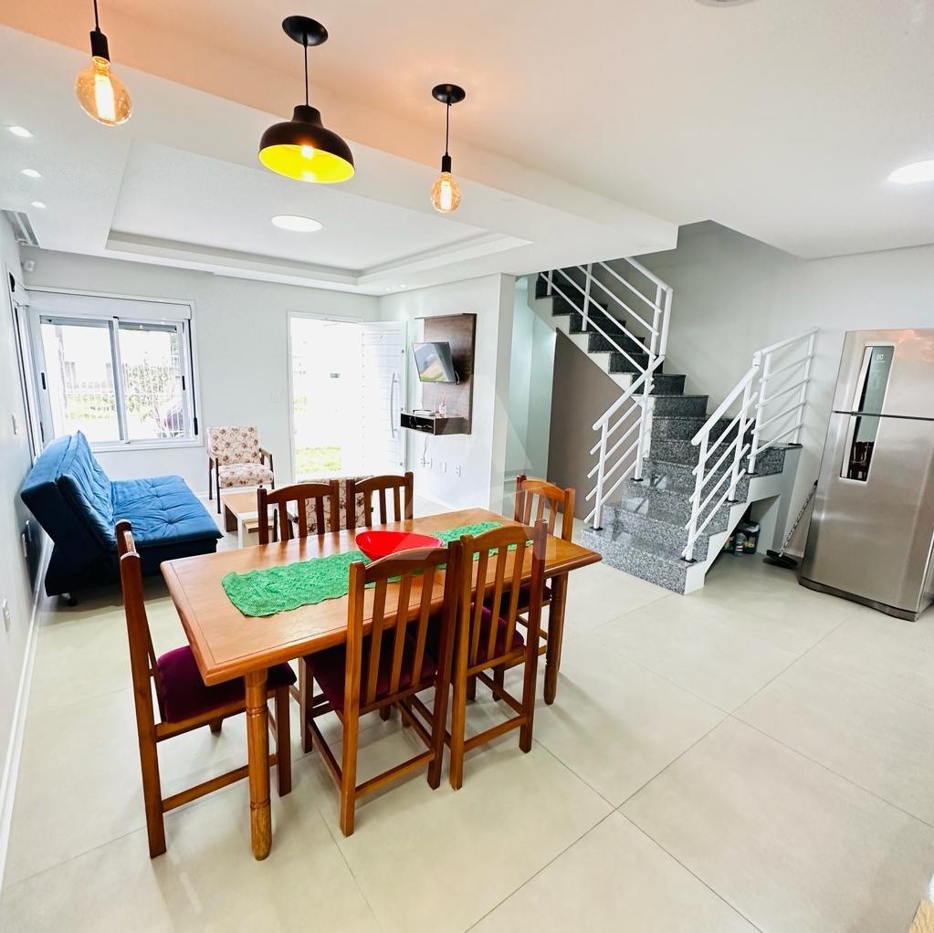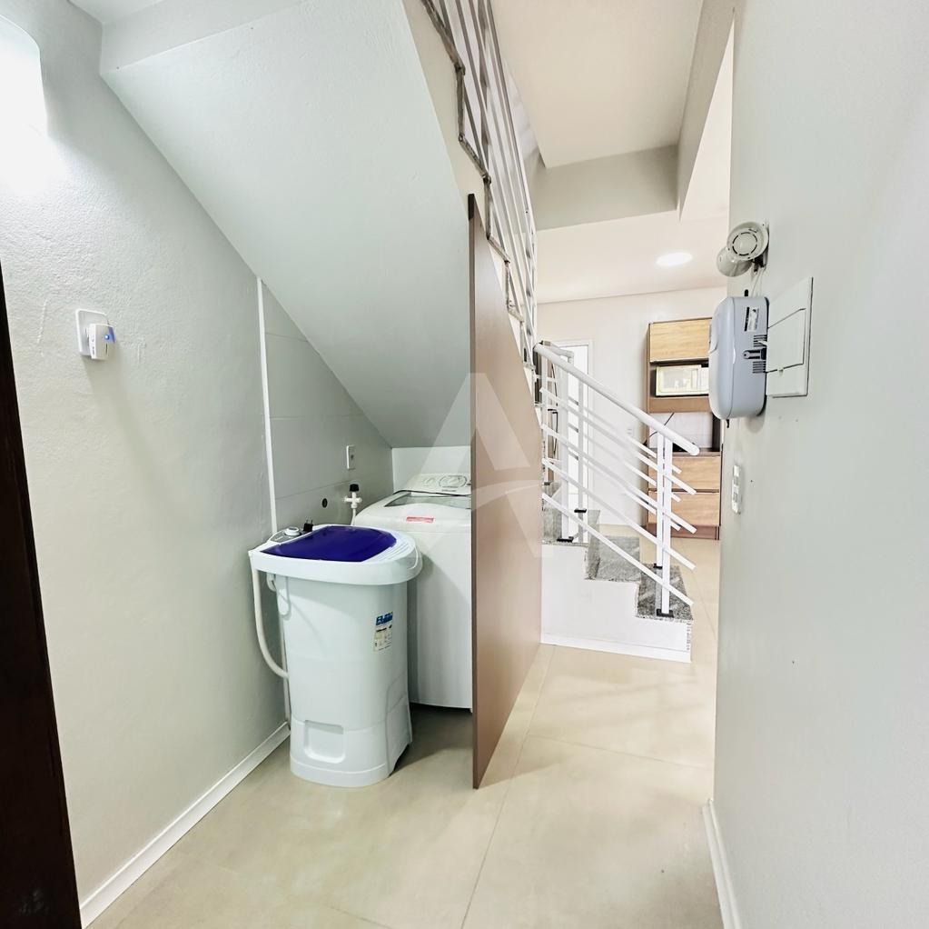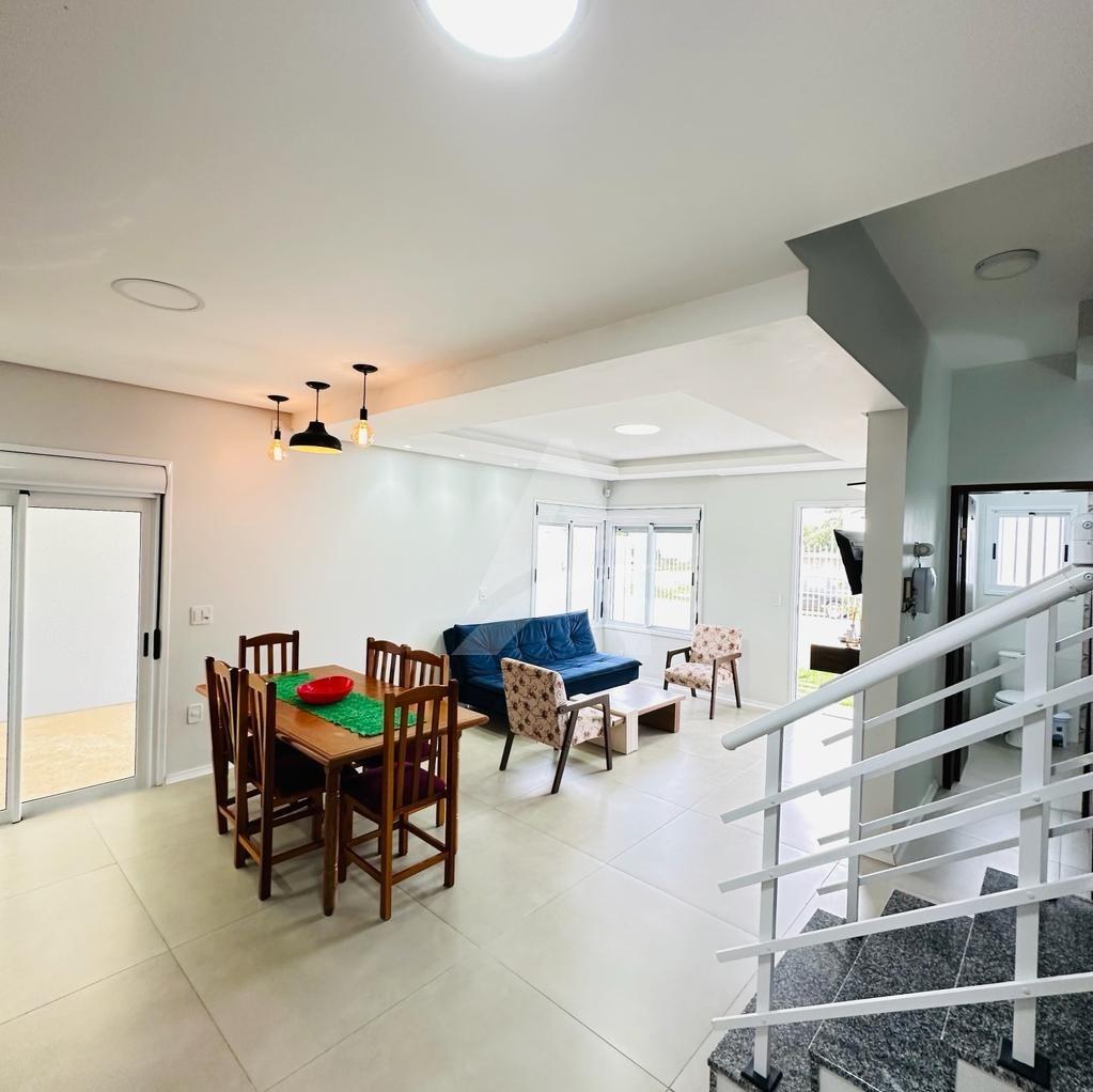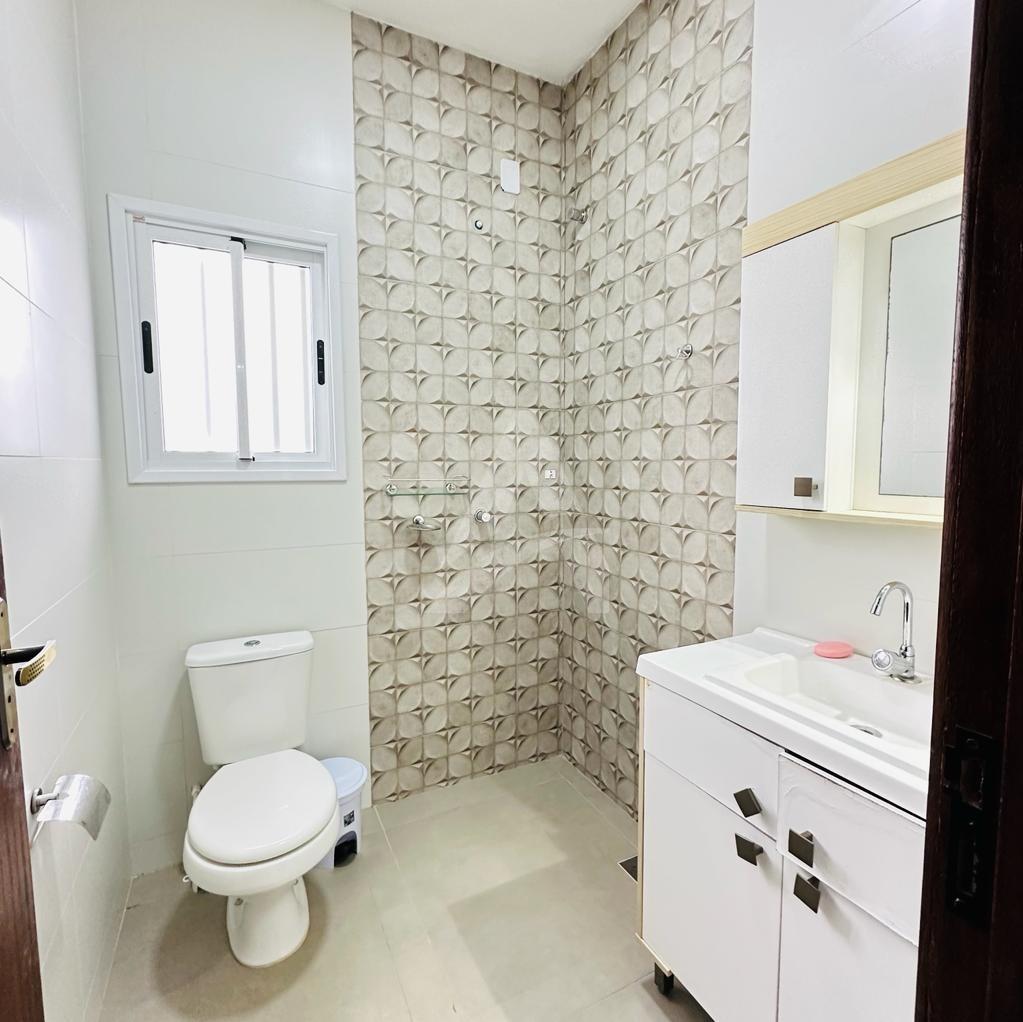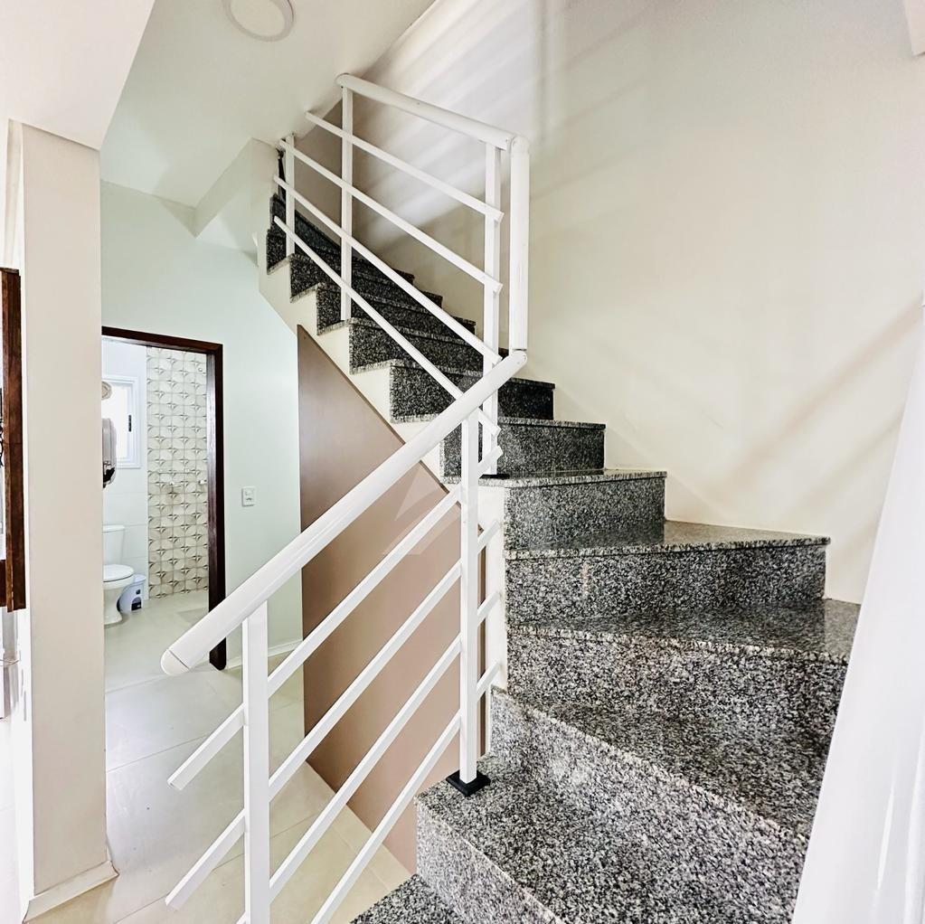 Lindo sobrado em alvenaria com 03 dormitórios sendo todos com piso flutuante, 01 banheiro, sala de estar com cozinha conjugada com churrasqueira, lavabo, área nos fundos e garagem para dois carros.