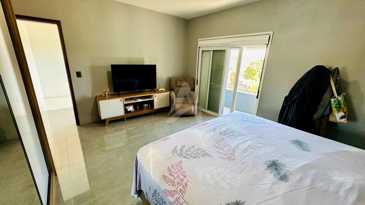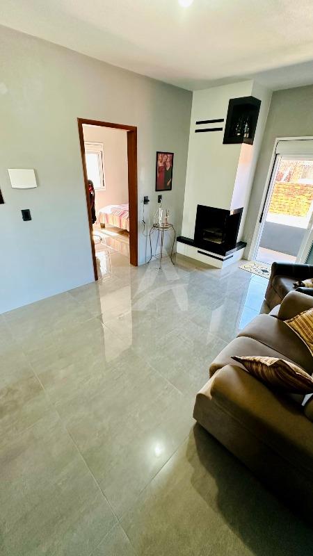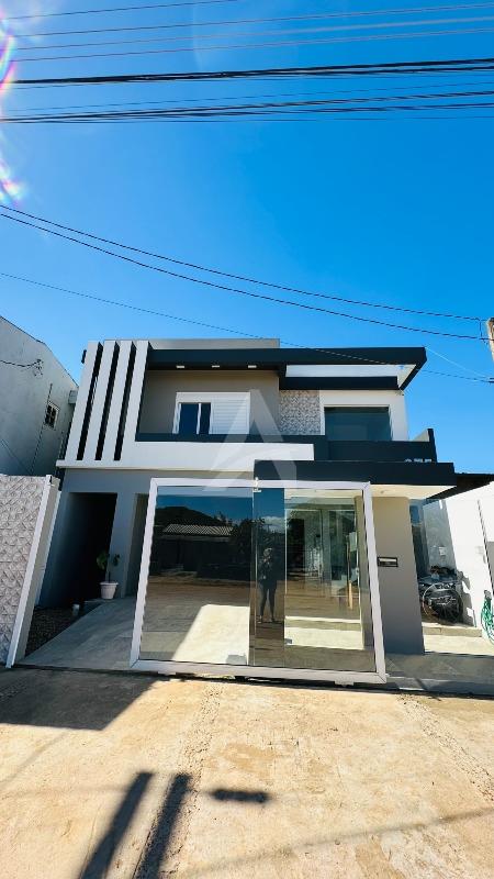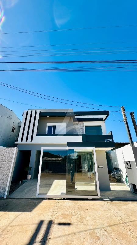 Sobrado em alvenaria com 122,00m², contendo no térreo hall de entrada, sala de estar, cozinha, 01 dormitório, 01 banheiro, espaço gourmet com churrasqueira, garagem e lavanderia. E, no primeiro pavimento contém 01 suíte, 01 dormitório, sala de estar com lareira, e, sacada nos fundos e na frente. Terreno com área de 170,00m², medindo 8,50 x 20,00 metros. Frente Oeste.