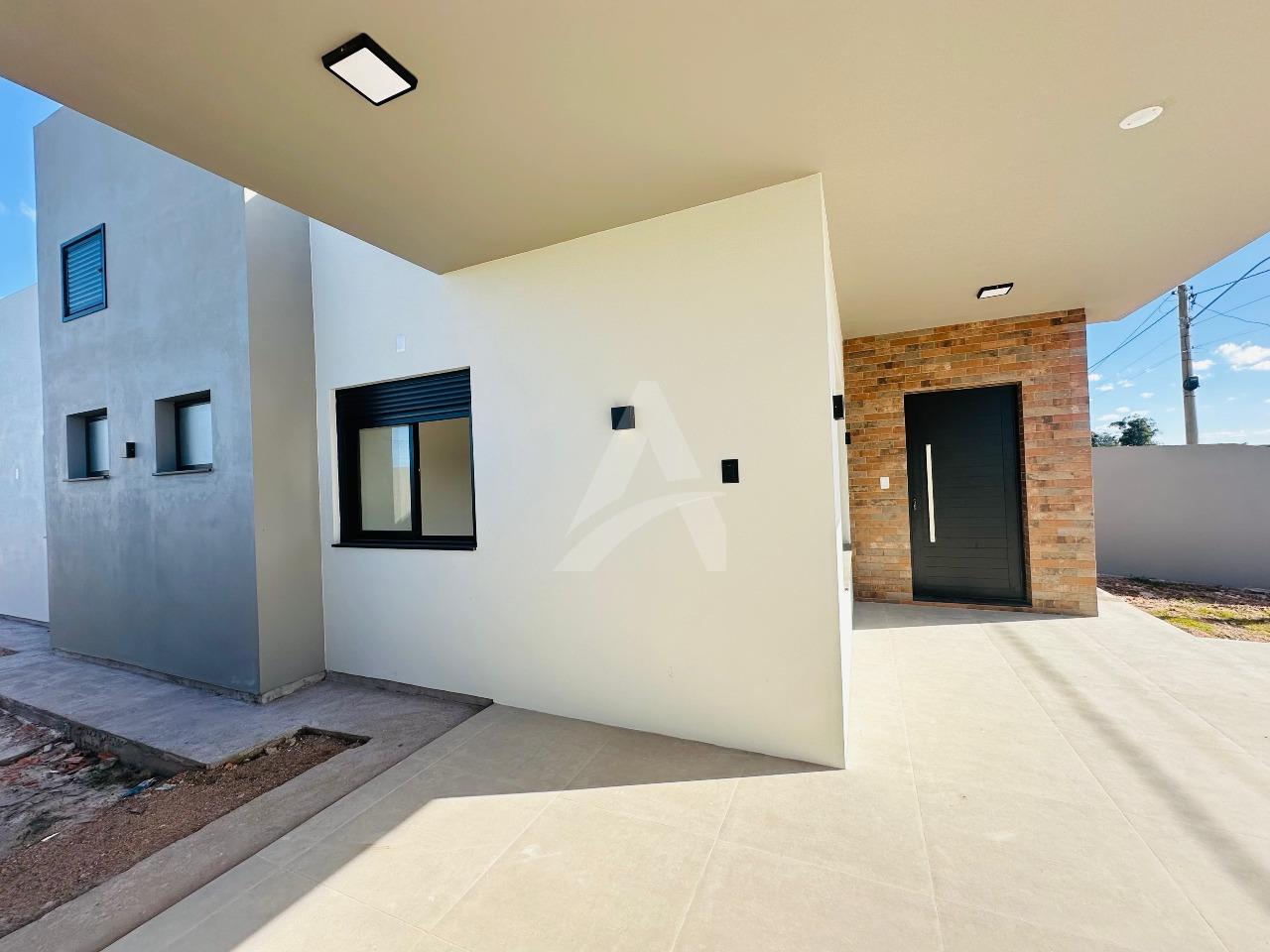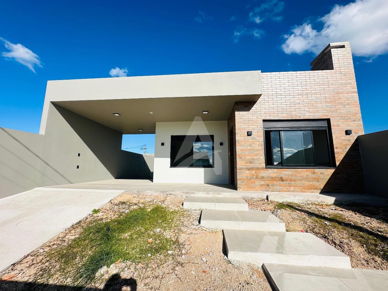 Casa de alvenaria , MODERNA, com 02 dormitórios sendo uma suíte, sala com lareira, banheiro, abrigo para carro e tambem acesso para os fundos para estacionamento de mais carros e lavanderia. Terreno: 10 x 25m , frente oeste ao belo loteamento campos Verdes.