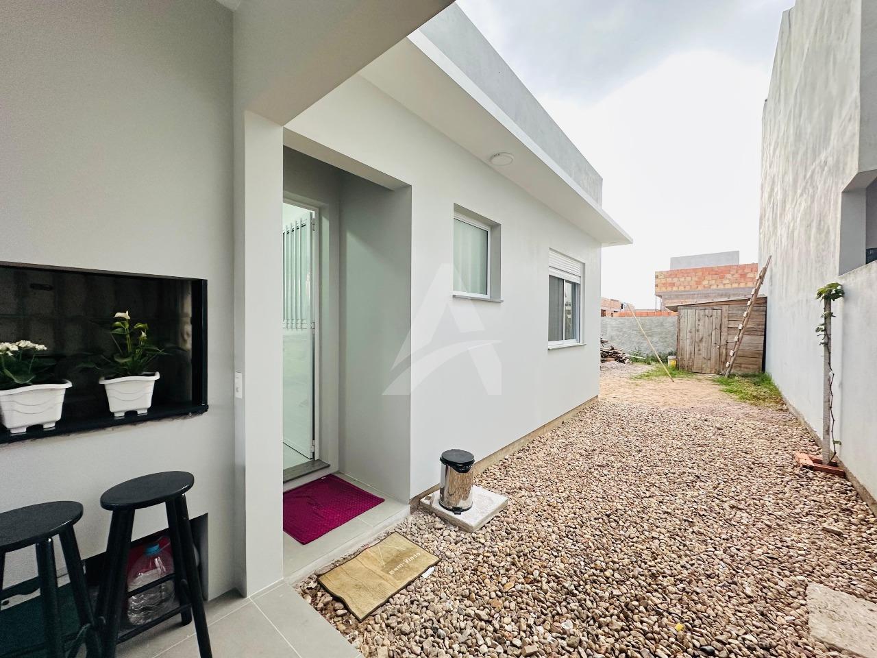 Vende-se casa NOVA de alvenaria e laje, com 95,50m² de área construída, em São Lourenço do Sul, com dois dormitórios, sendo 1 suíte, sala com lareira e cozinha conjugada, com moveis da cozinha e sala sob medida, lavanderia, banheiro, abrigo para o carro com churrasqueira, terreno 10m x 25m. Localizada no loteamento Campos Verdes.
