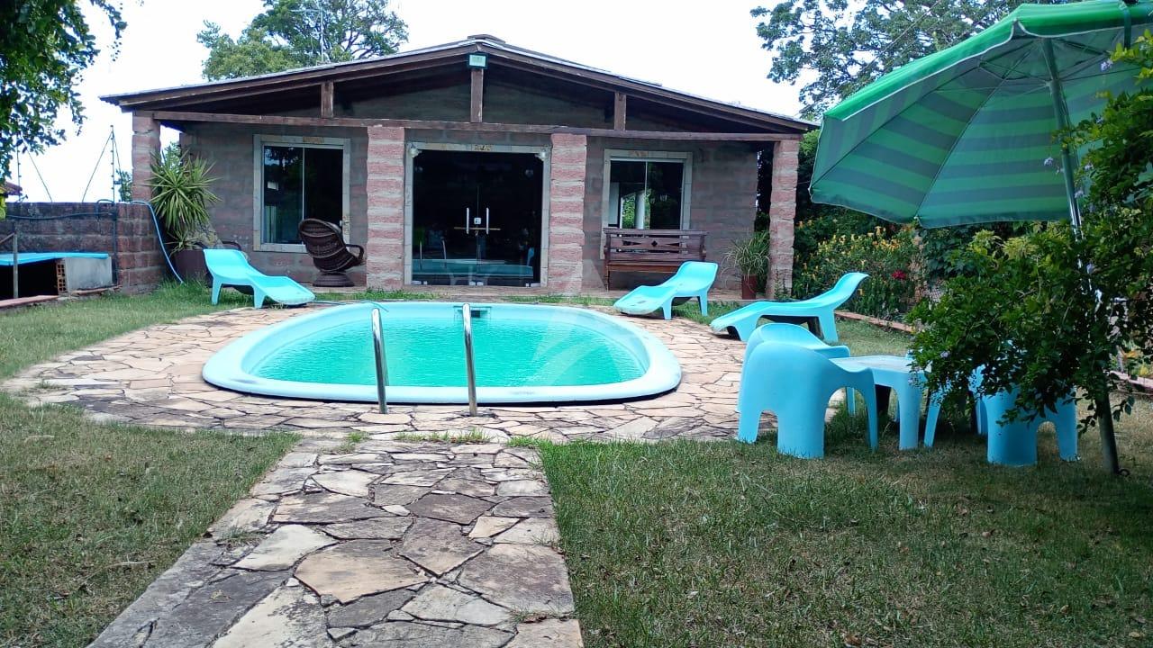 Escritório e salão de festas mobiliado, capela, pergolado e piscina com vestiário e sanitário, garagem coberta para 4 veículos na casa principal, estrutura Rural e de Lazer, dois galpões de alvenaria