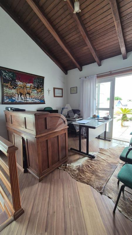 Na entrada uma ampla sala de estar com lareira, perfeita para momentos aconchegantes, integrada à sala de jantar, ambas separadas por uma charmosa porta-janela em madeira nobre, que agrega sofisticação e personalidade ao ambiente. No pavimento térreo, o imóvel conta ainda com 02 dormitórios, banheiro social e uma cozinha sob medida, funcional e elegante, equipada com churrasqueira, ideal para o dia a dia e para receber convidados.