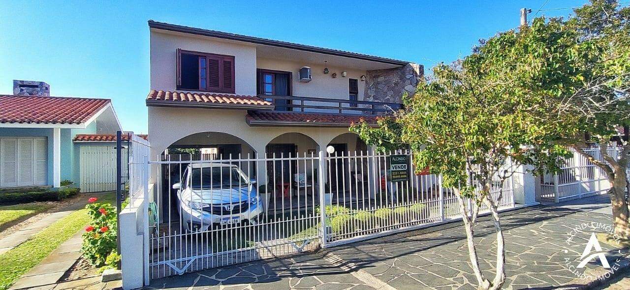 Casa de alvenaria: 279,61 m² com 01 suíte com sacada, 02 dormitórios, banheiro, sala de estar, hall de entrada, jardim de inverno, lavabo, sala jantar, cozinha, lavanderia, área coberta. Fundos: garagem para 02 carros, churrasqueira, cozinha, lavanderia e deposito. Pátio calçado. Pomar e poço. Terreno: 10 x 56. Obs: estrutura para mais andares.