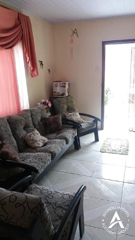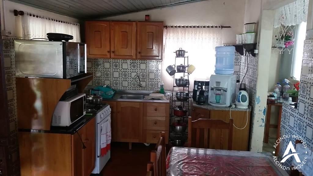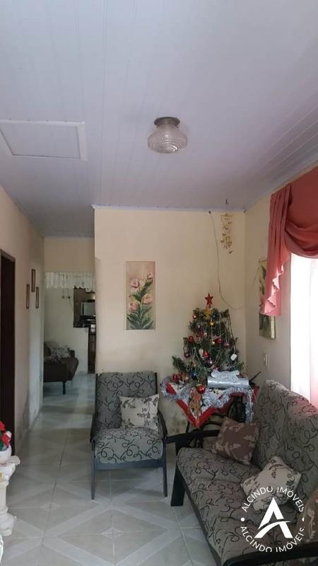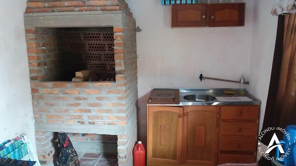 Casa de alvenaria e telha de barro com 3 dormitórios, sala de tv, sala, cozinha, banheiro e garagem fechada nos fundos . Terreno medindo 9,65m x 26,60m.