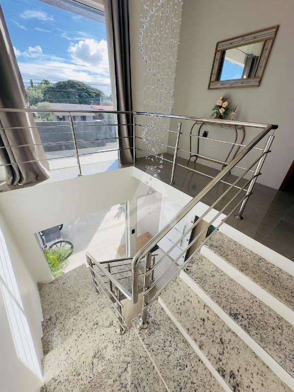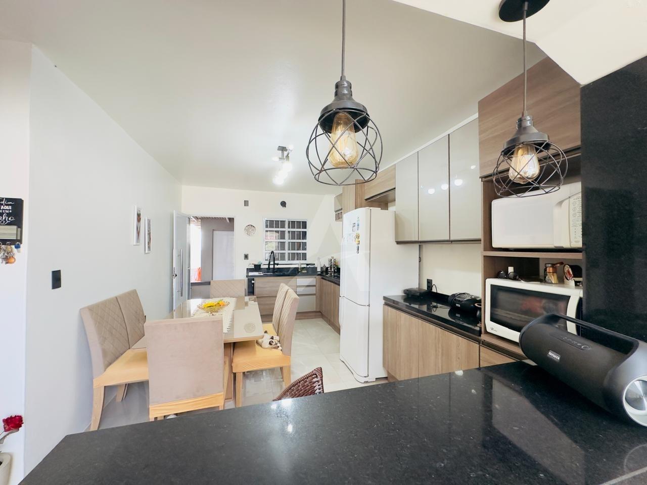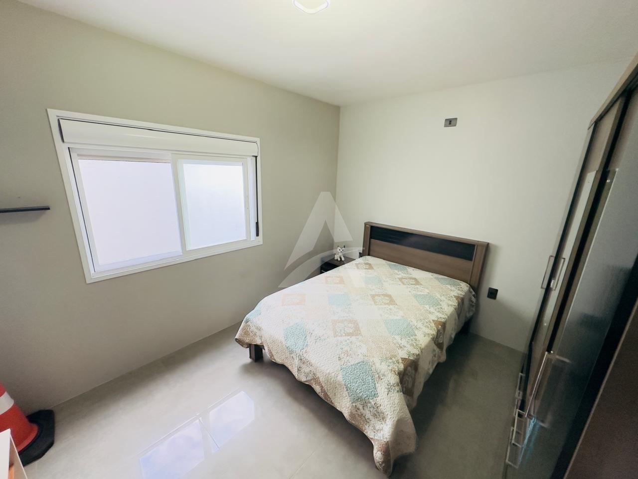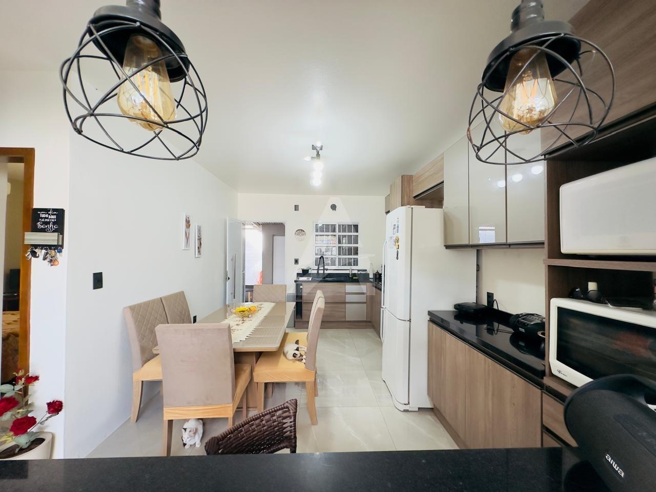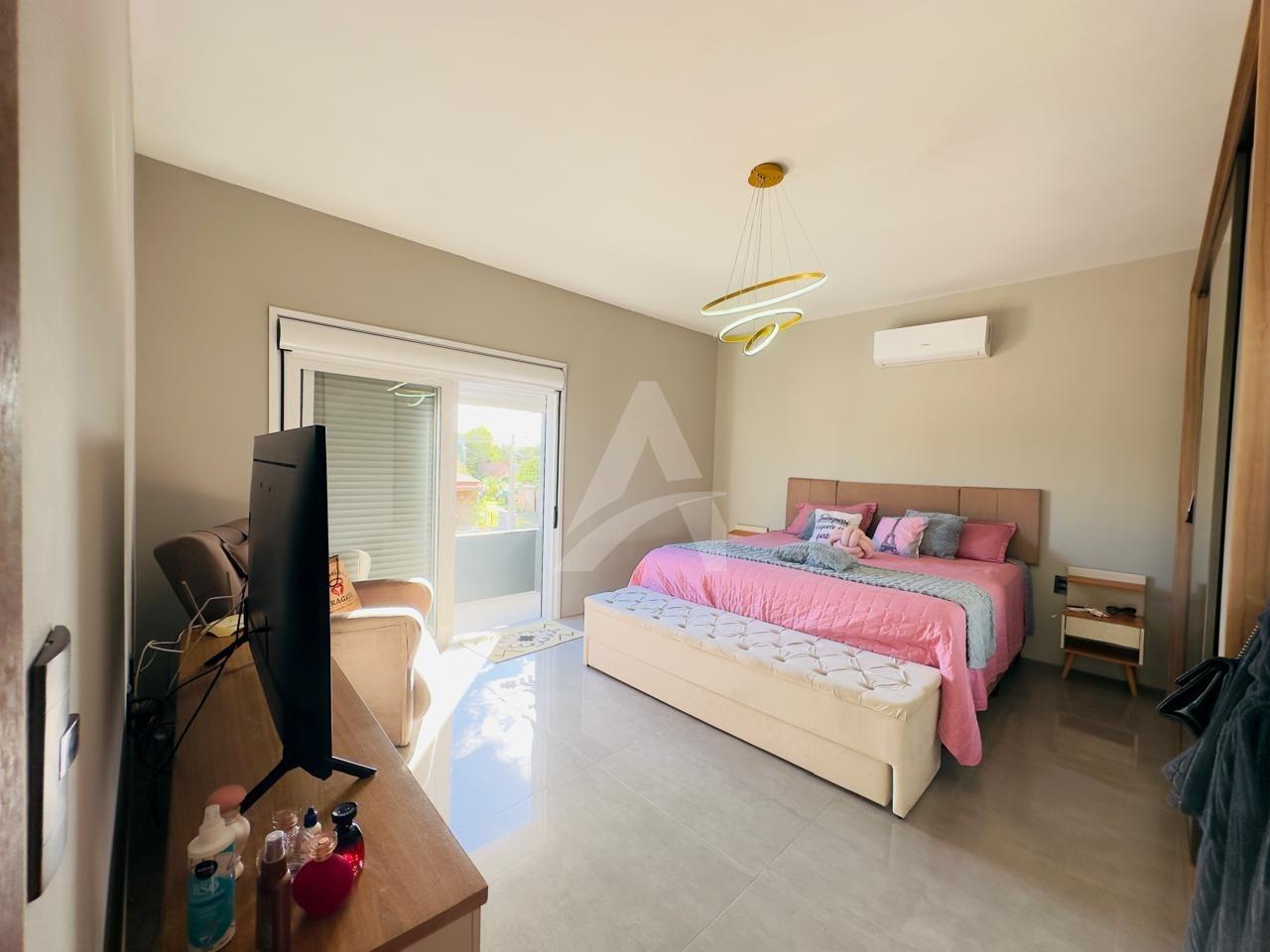 Sobrado em alvenaria com 122,00m², contendo no térreo hall de entrada, sala de estar, cozinha, 01 dormitório, 01 banheiro, espaço gourmet com churrasqueira, garagem e lavanderia. E, no primeiro pavimento contém 01 suíte, 01 dormitório, sala de estar com lareira, e, sacada nos fundos e na frente. Terreno com área de 170,00m², medindo 8,50 x 20,00 metros. Frente Oeste.