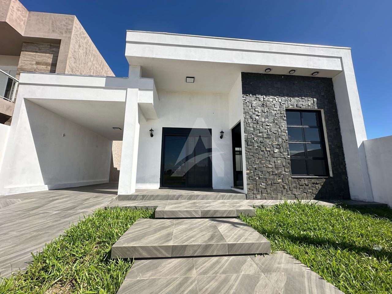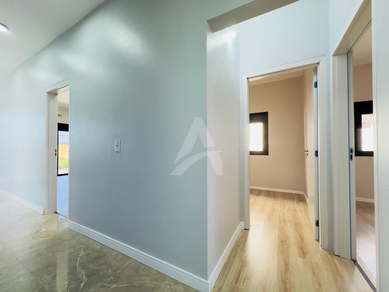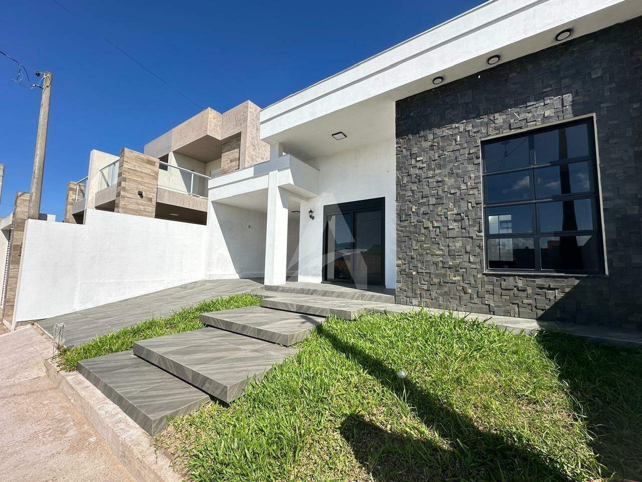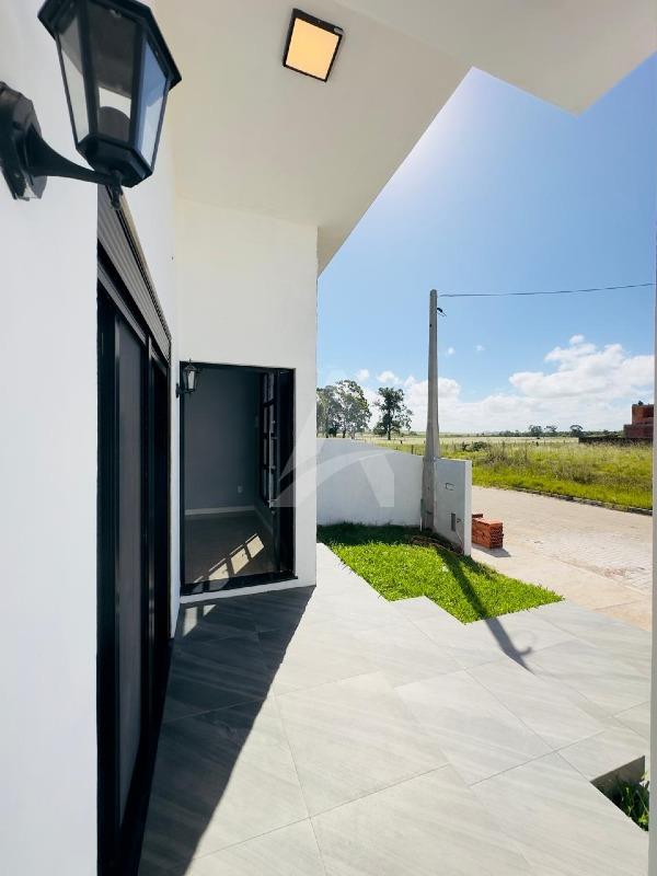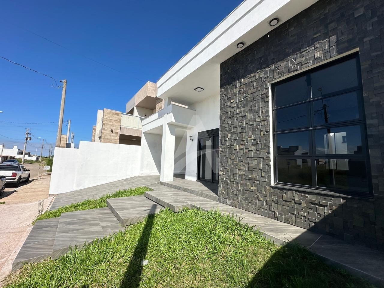 Casa nova no loteamento Campos Verdes com 125m2 de área construída, contendo 03 dormitórios com piso flutuante, sendo 01 suíte, sala de estar com lareira, cozinha, 02 banheiros com box, lavanderia, área gourmet, churrasqueira, abrigo para 01 veiculo mas tem espaço para mais , aberturas em alumínio preto, janelas com tela, piso em porcelanato, espera para ar condicionado. Terreno 10m de frente por 25m com 250m2 de área total. Imovel de frente norte.